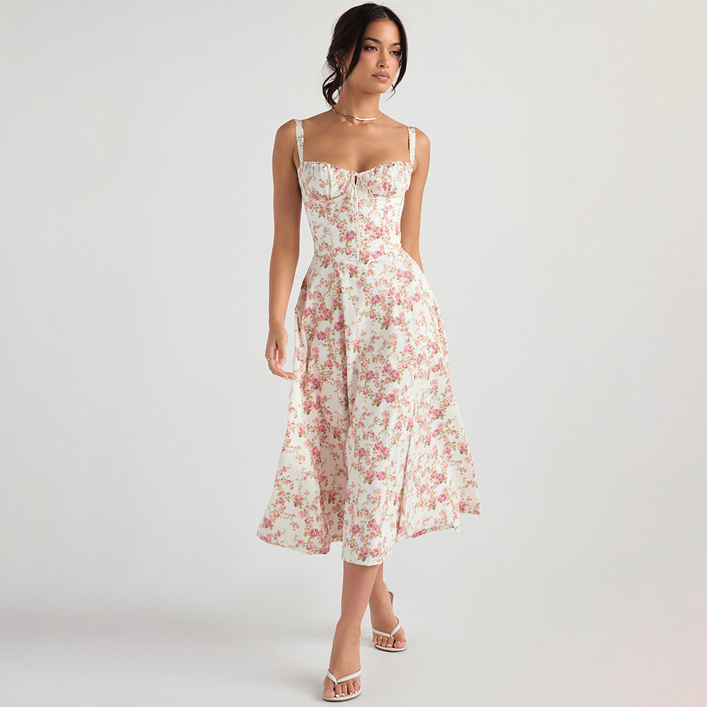 Women Dresses Spring Floral Skirt Vacation Style Suspender Dress (Lbk0409)