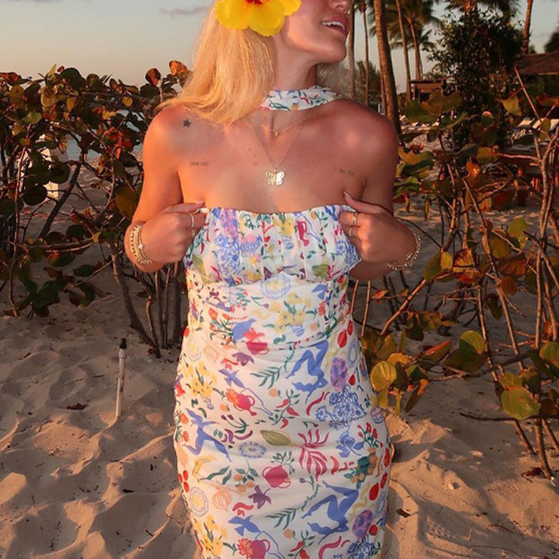 Women Dresse Backless Dress Waist-Tight Sheath Slim-Fit Printed Dress