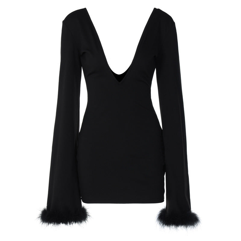 Women Dresse Horn Long Sleeve Dress Sexy Topless V-neck Skirt