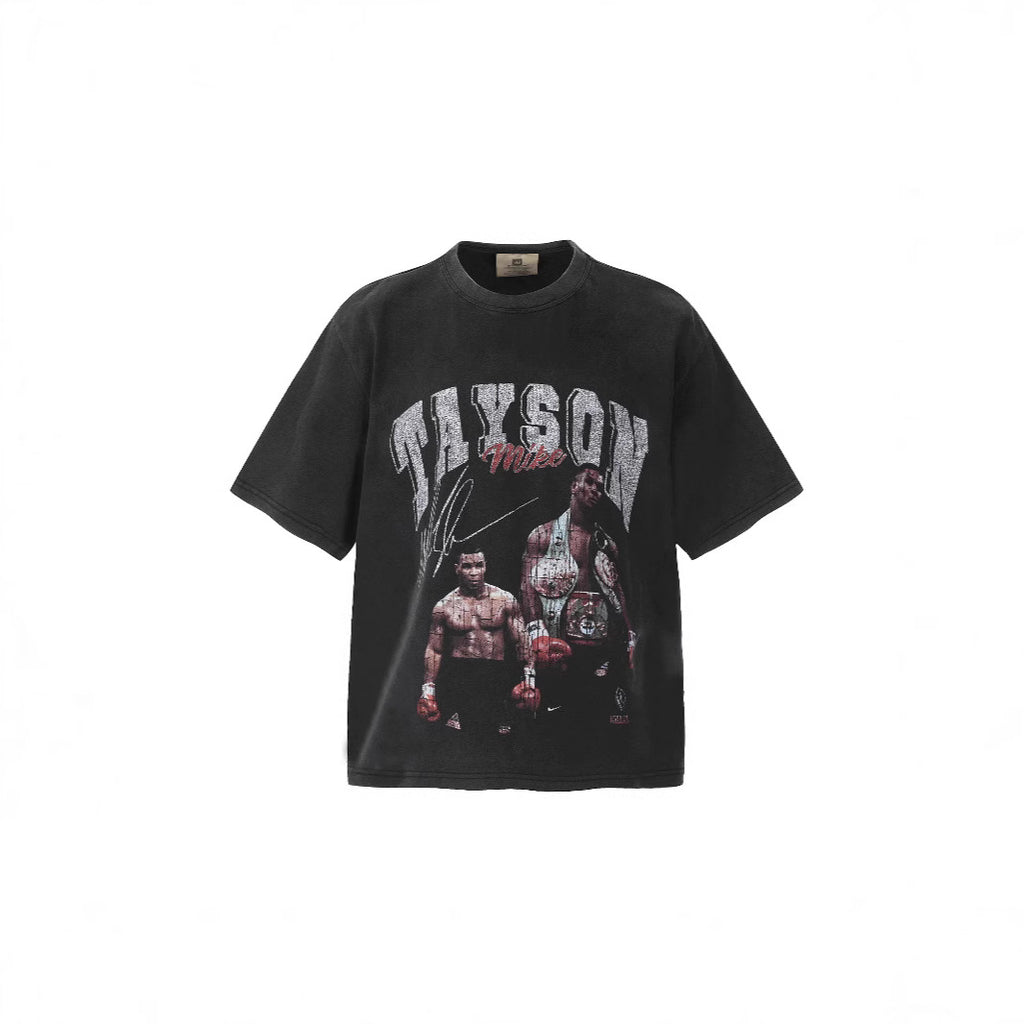 Mens T-shirts Mike Tyson Boxing Fighting Print Washed Old Short Sleeves