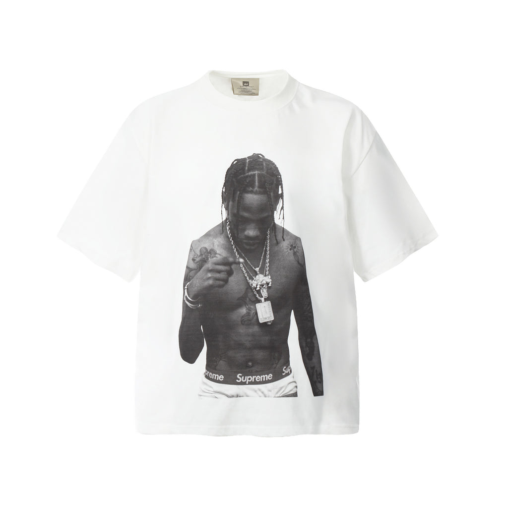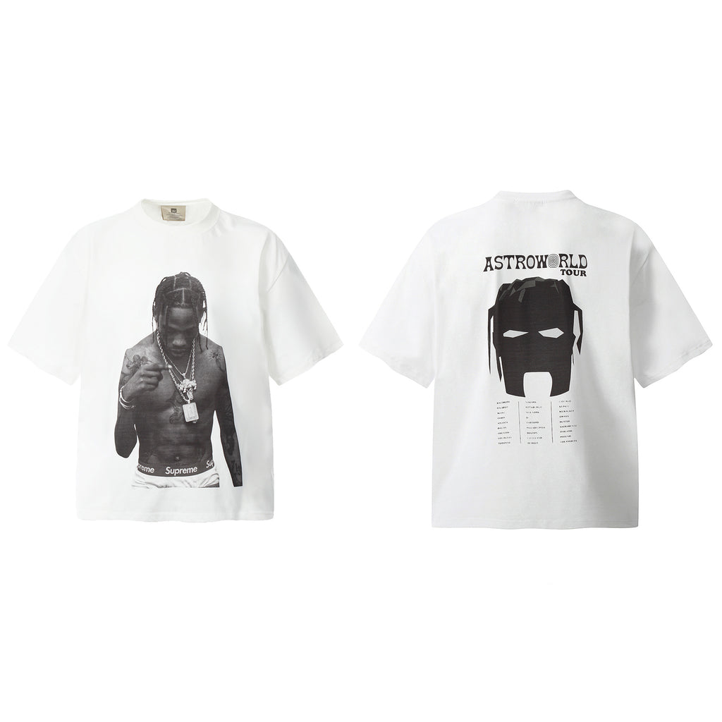 Mens T-shirts Travis Scott BIG FACE print distressed short sleeves