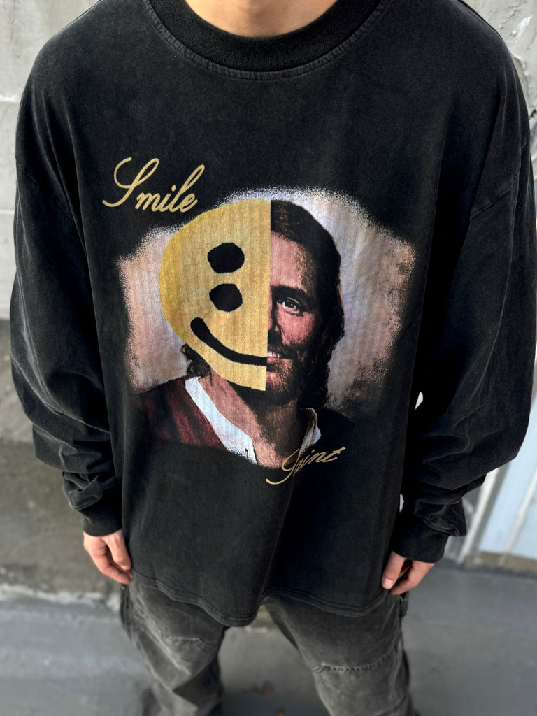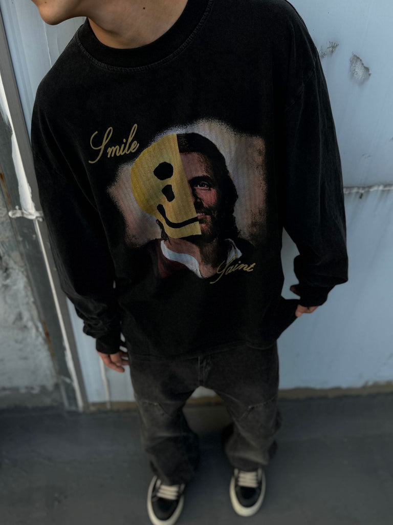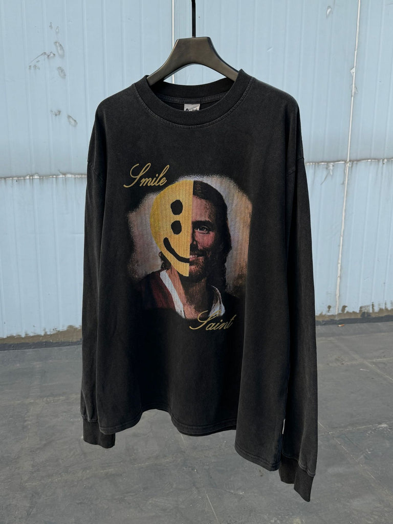 Mens T-shirts SAINT MICHAEL CHO saint smile wash water do old long sleeve T-shirt