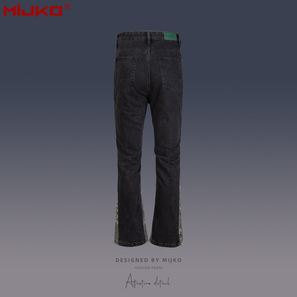 MIJKO Men Vintage Pants Camouflage Splicing Slim-Fit Casual Jeans