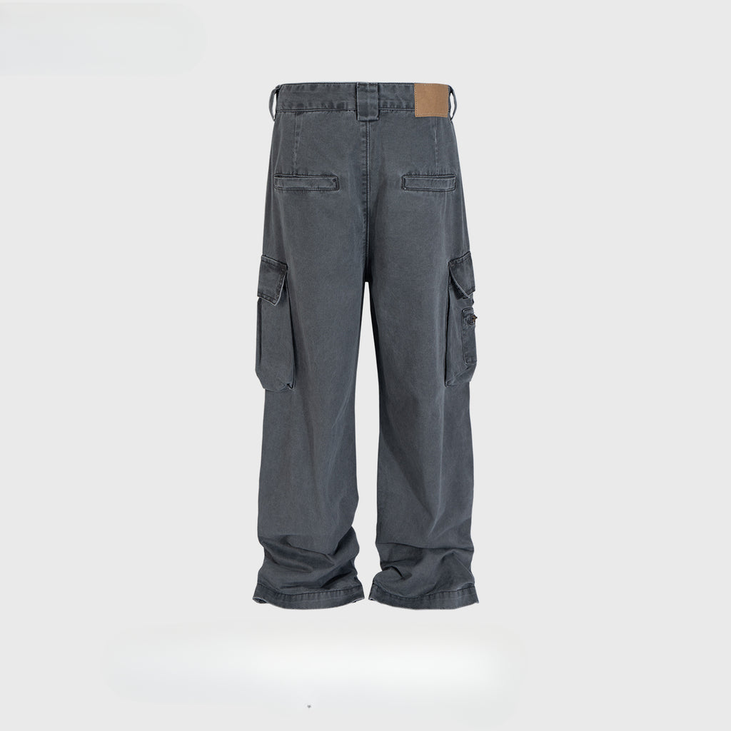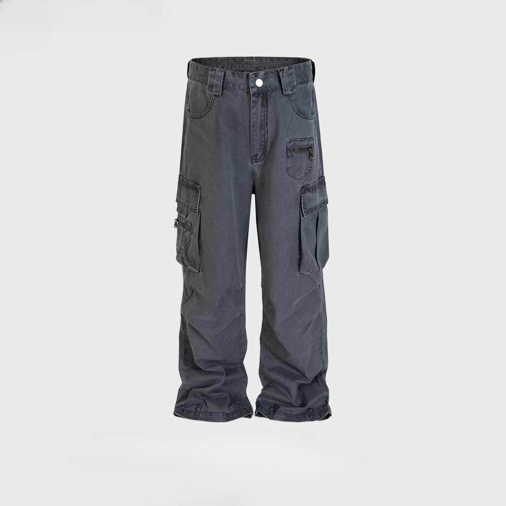 MIJKO Men Vintage Pants MIJKO High Street Wash Straight Tooling Casual Jeans
