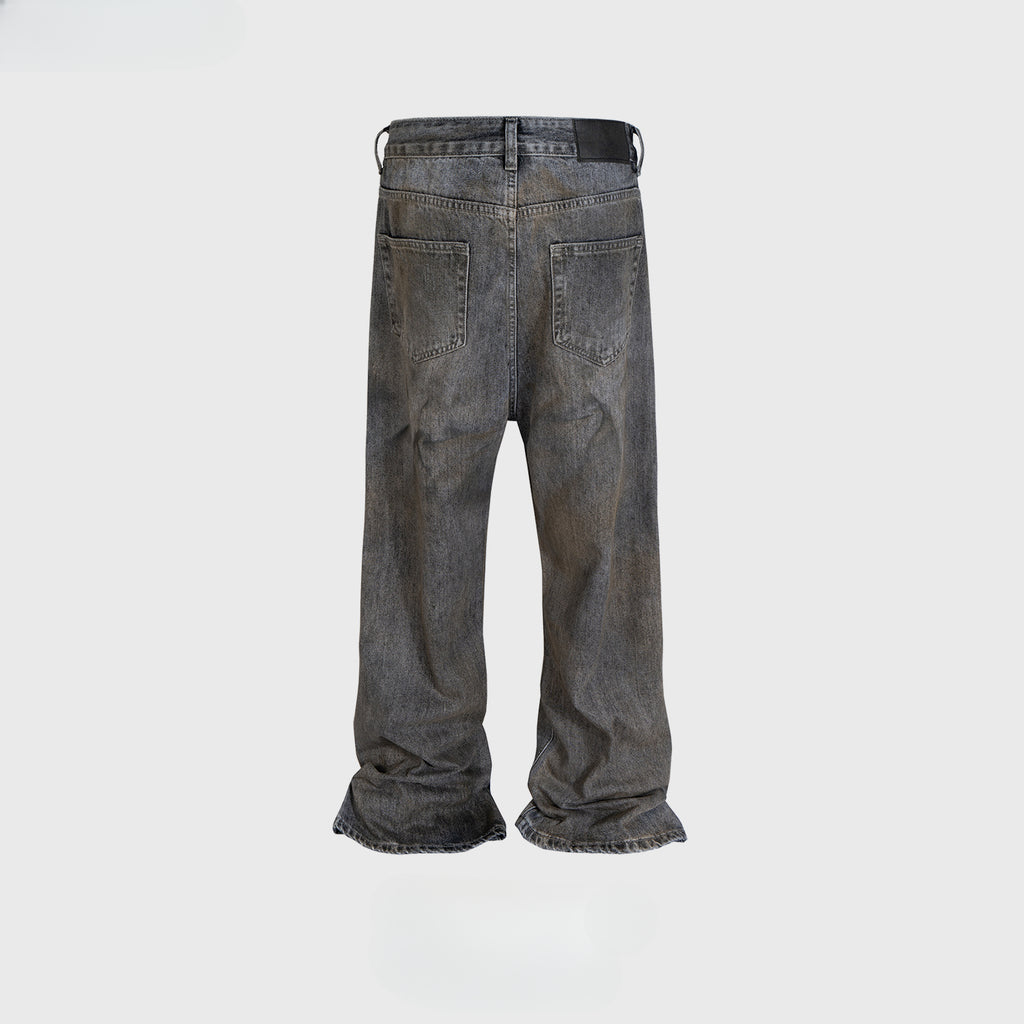 MIJKO Men Vintage Pants MIJKO micro-wide-footed trousers washed old jeans