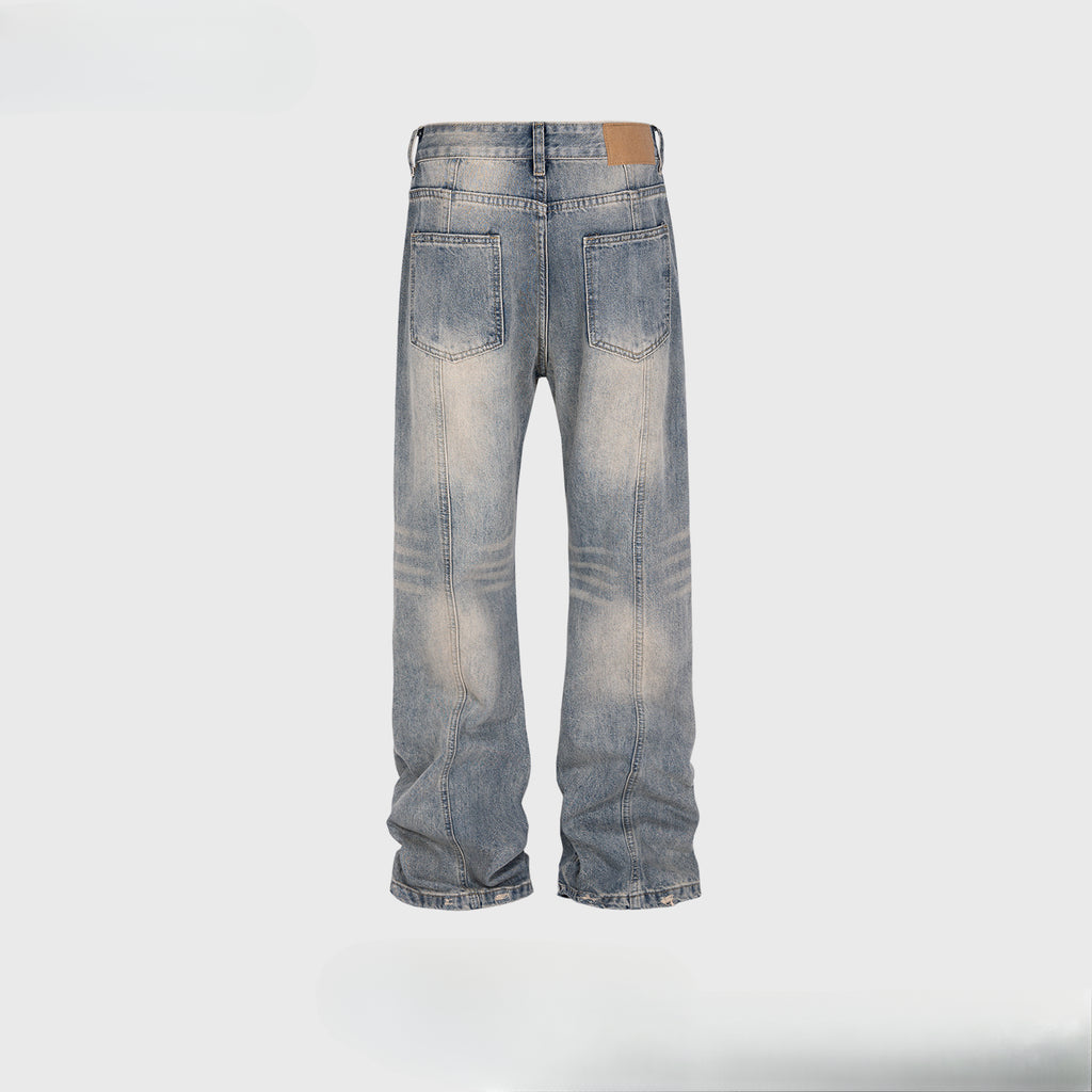 MIJKO Men Vintage Pants MIJKO Splicing Men's and Women's Ripped Wash Water Straight Jeans