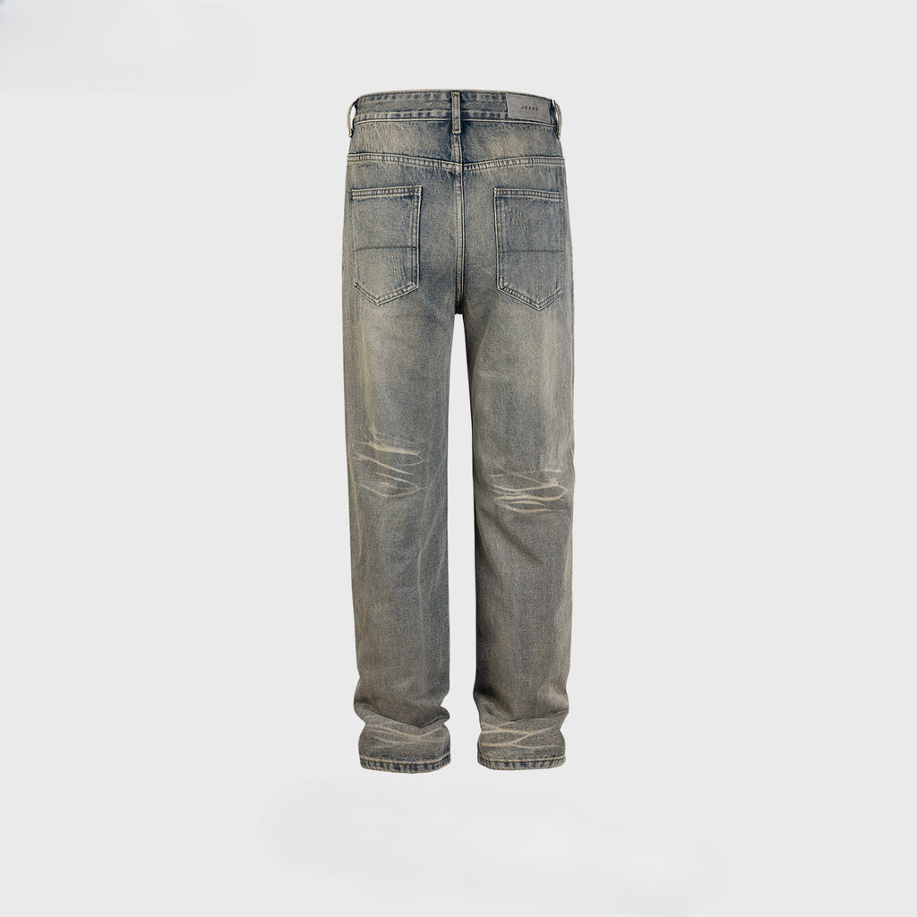 MIJKO Men Vintage Pants MIJKO retro washing water old trousers men's and women's straight jeans