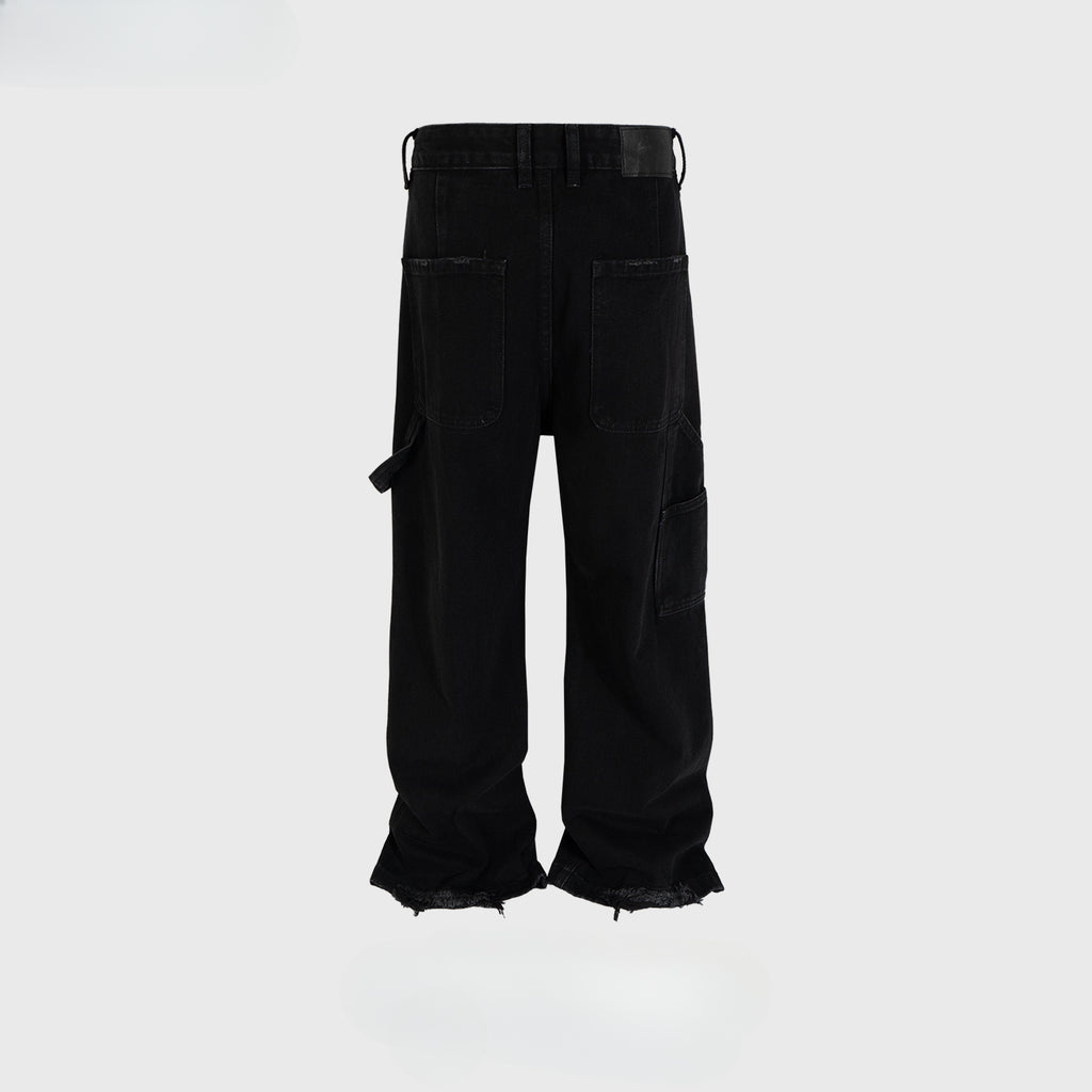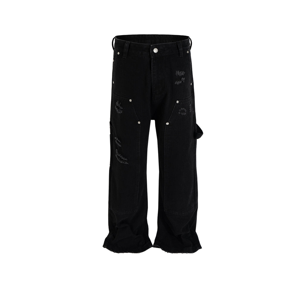 MIJKO Men Vintage Pants MIJKO High Street Spliced Trousers Men's and Women's Design Black Jeans