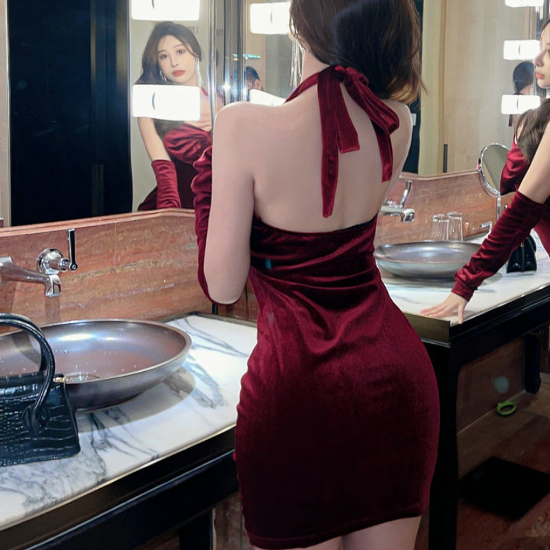 Women Maxi Dress Autumn Winter Retro Bow Dress