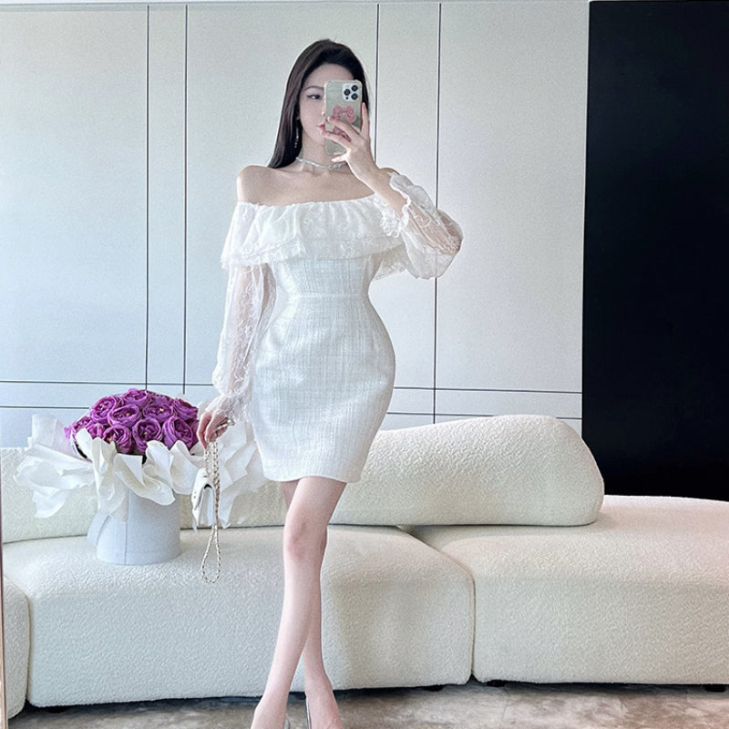 Women Maxi Dress Fall/Winter Classic Style off-the-Shoulder Lace Hip-Wrapped Dress Dress