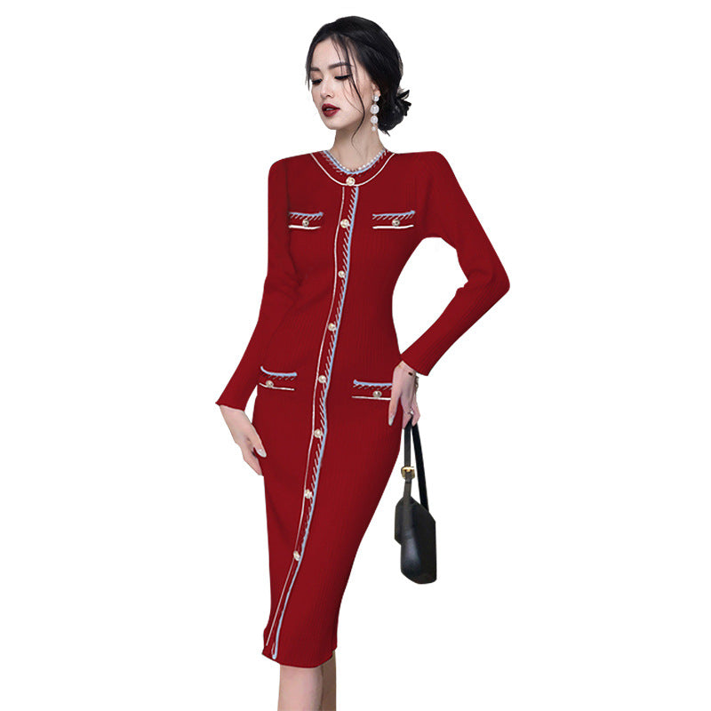 Women Maxi Dress Fall/Winter Slim Hip Knitwear Dress