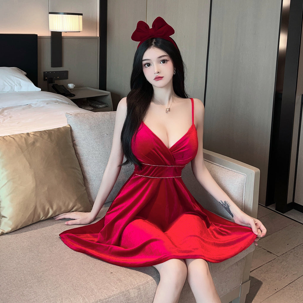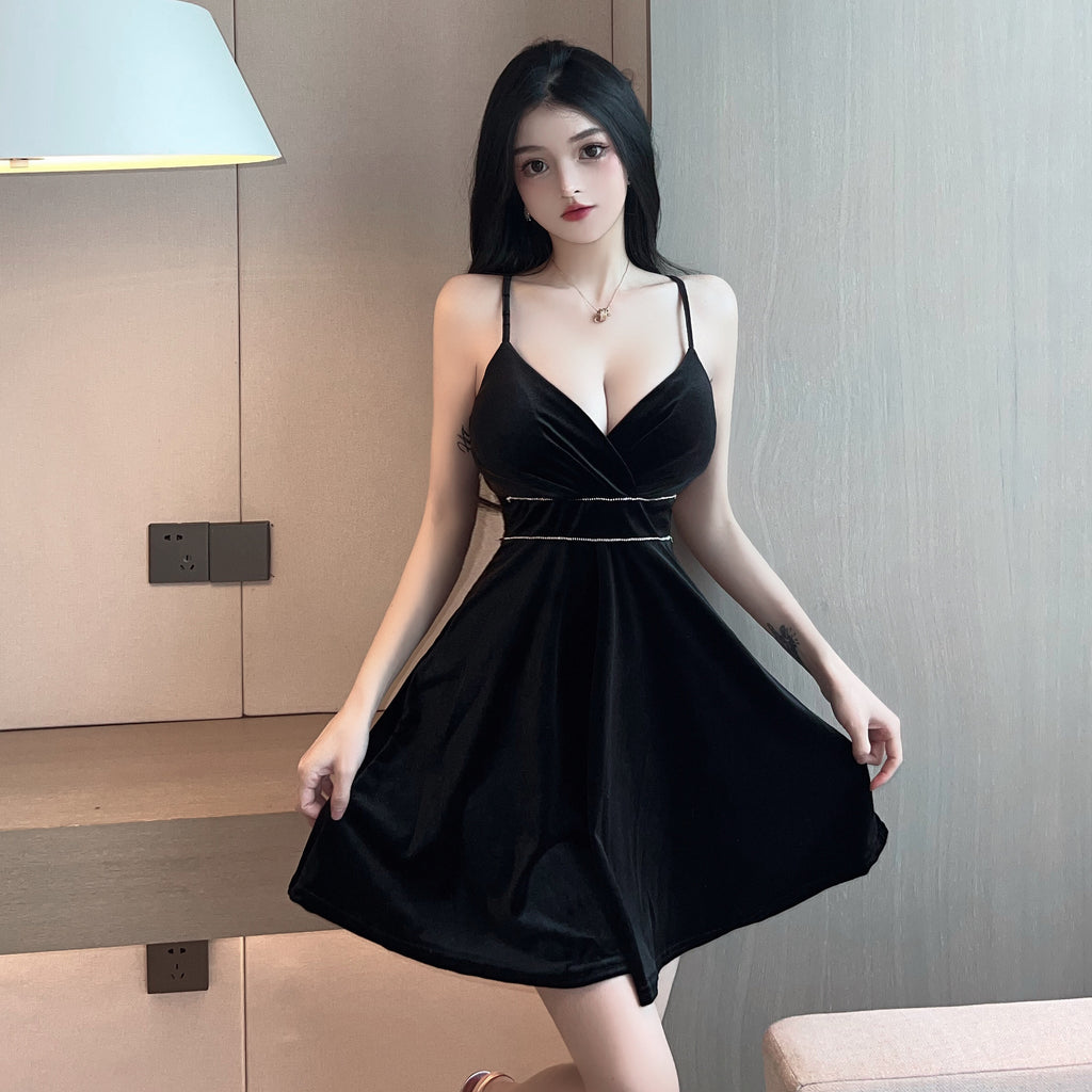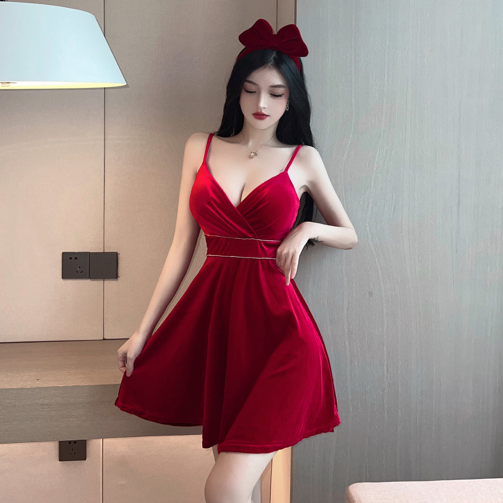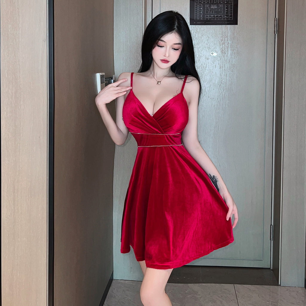 Women Maxi Dress Fall Sexy Pleuche Sling Dress