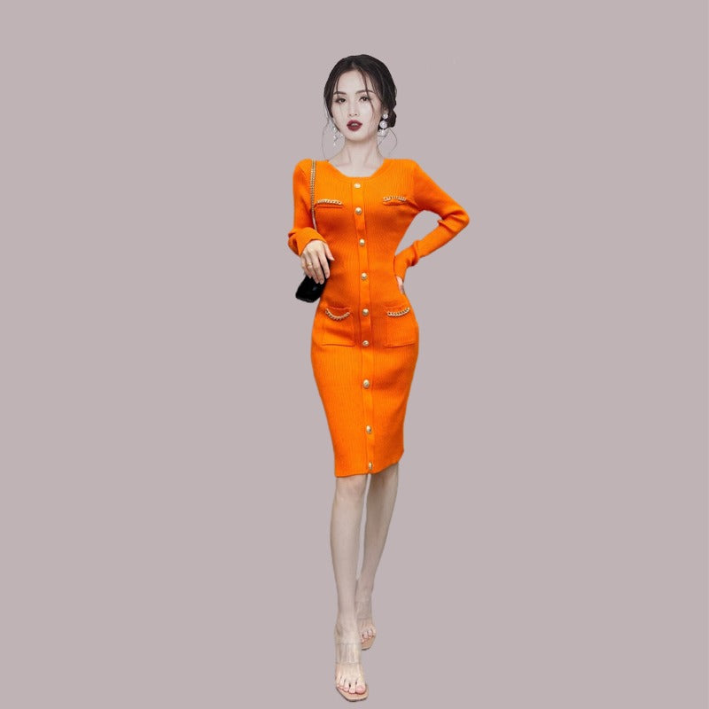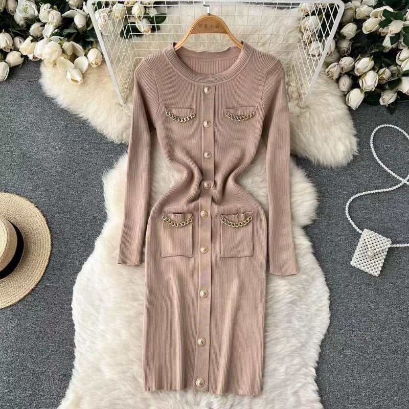 Women Maxi Dress Autumn and Winter Knitting Sheath Dress