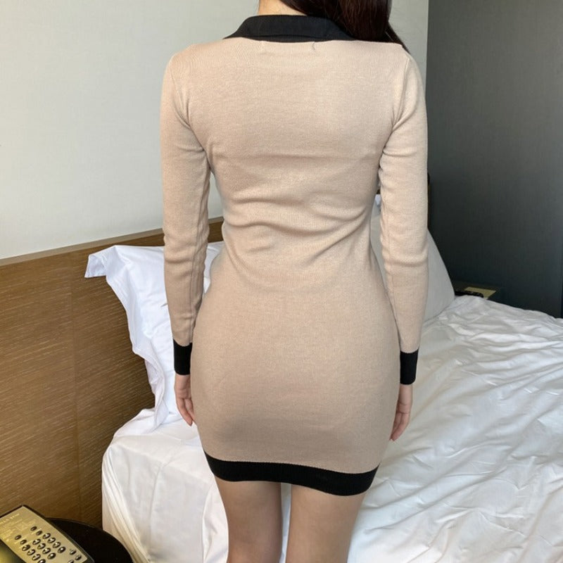 Women Maxi Dress Fall/Winter V Lapel Slim Fit Sexy Hip Knitwear Dress