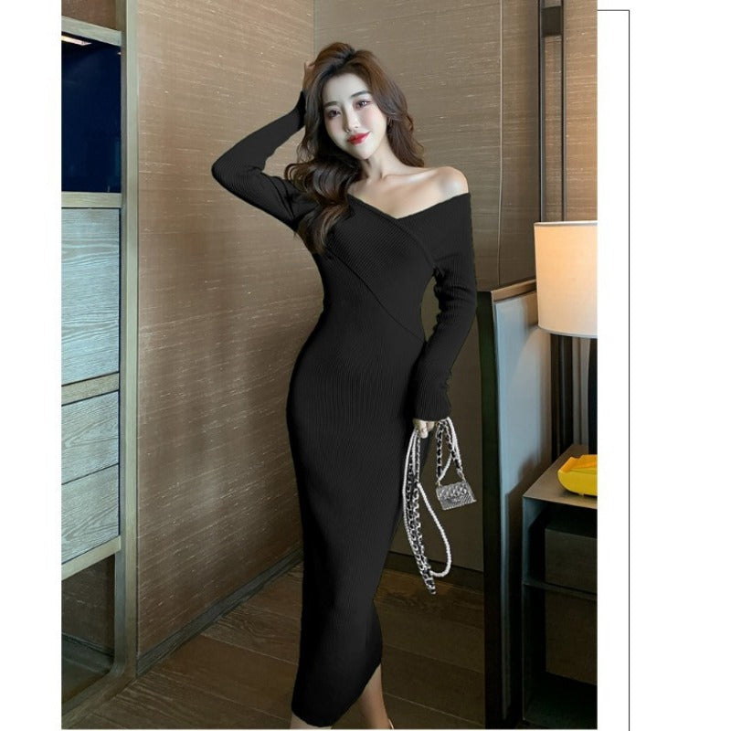 Women Maxi Dress Autumn Winter Sexy Long Sleeve Slim Knit Long Dress