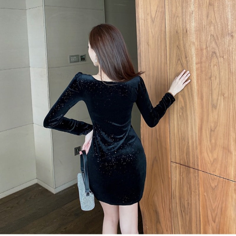 Women Maxi Dress Autumn Winter Sexy Deep V Sheath Pleuche Dress