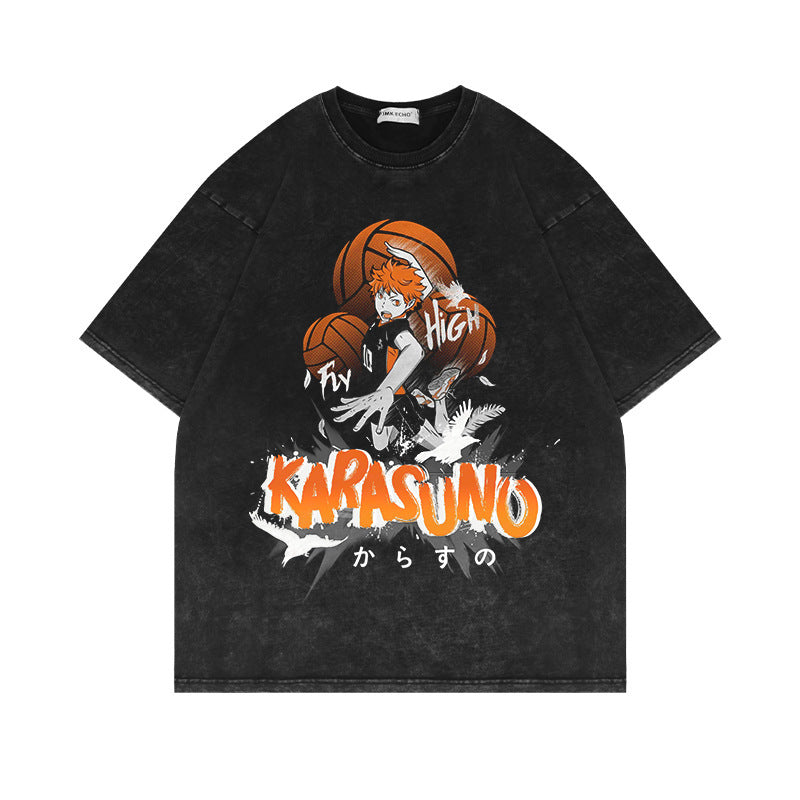 Washed old short-sleeved T-shirt anime volleyball teenager oversize