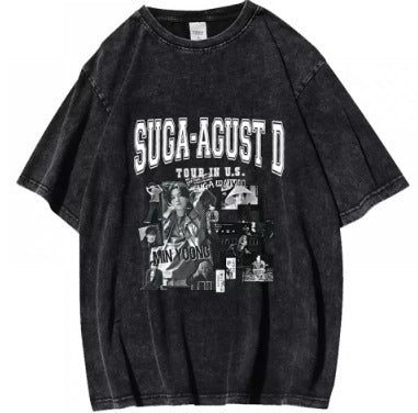 Washed Vintage Halloween Printed T-Shirt Casual Top
