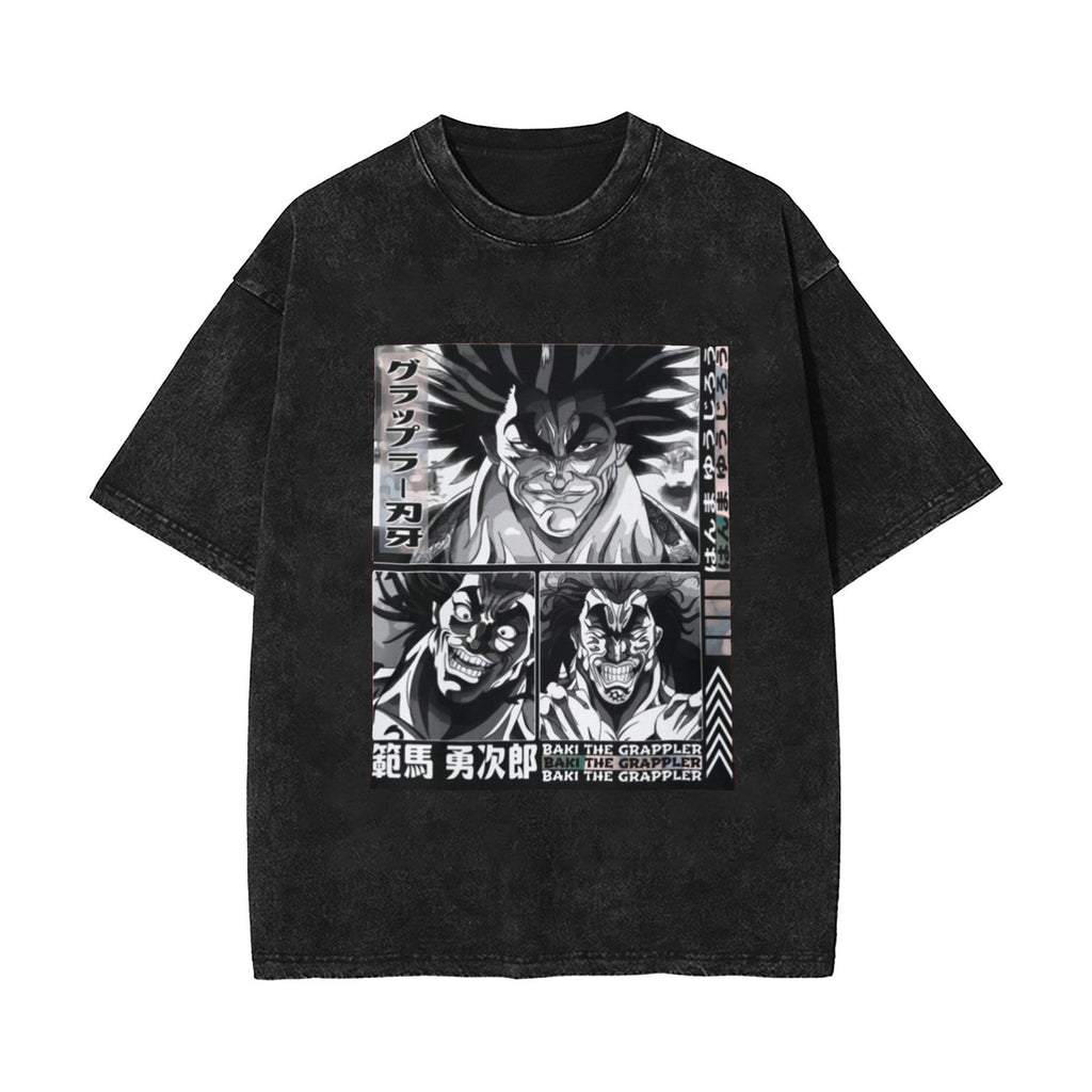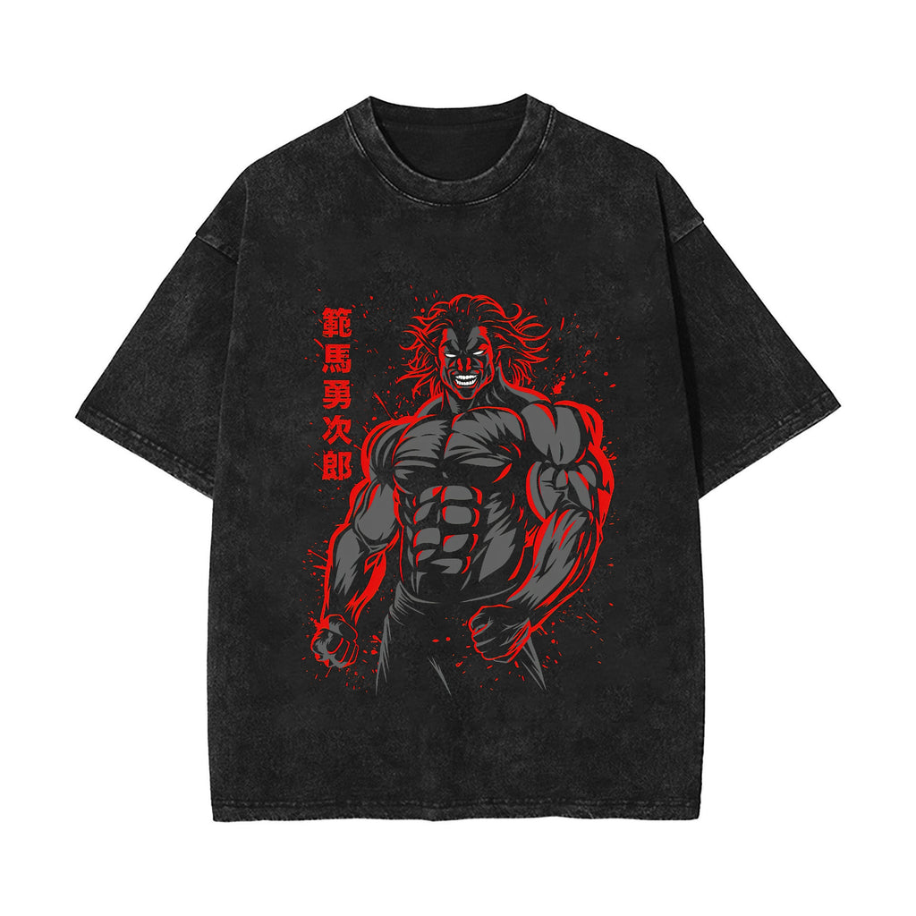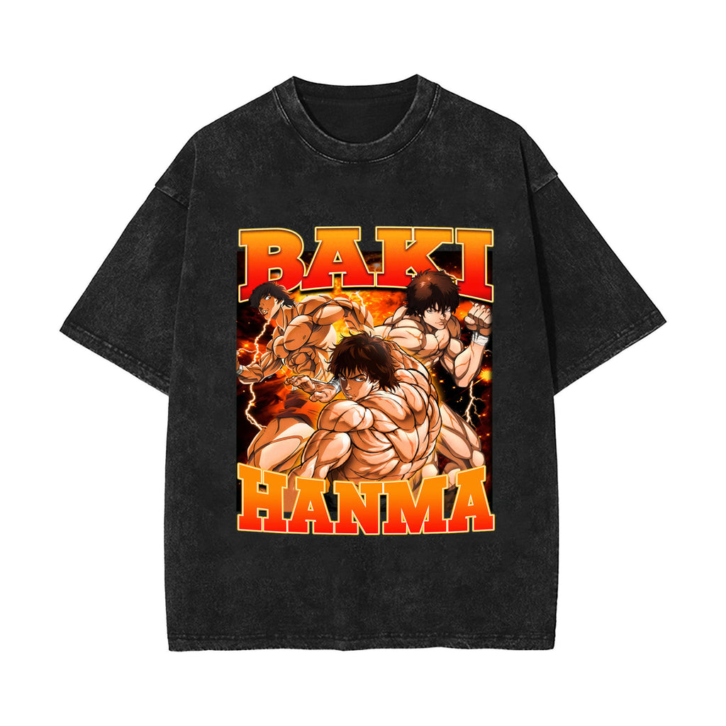Washed cotton t-shirt Baki Hanma printed washed old short-sleeved t-shirt