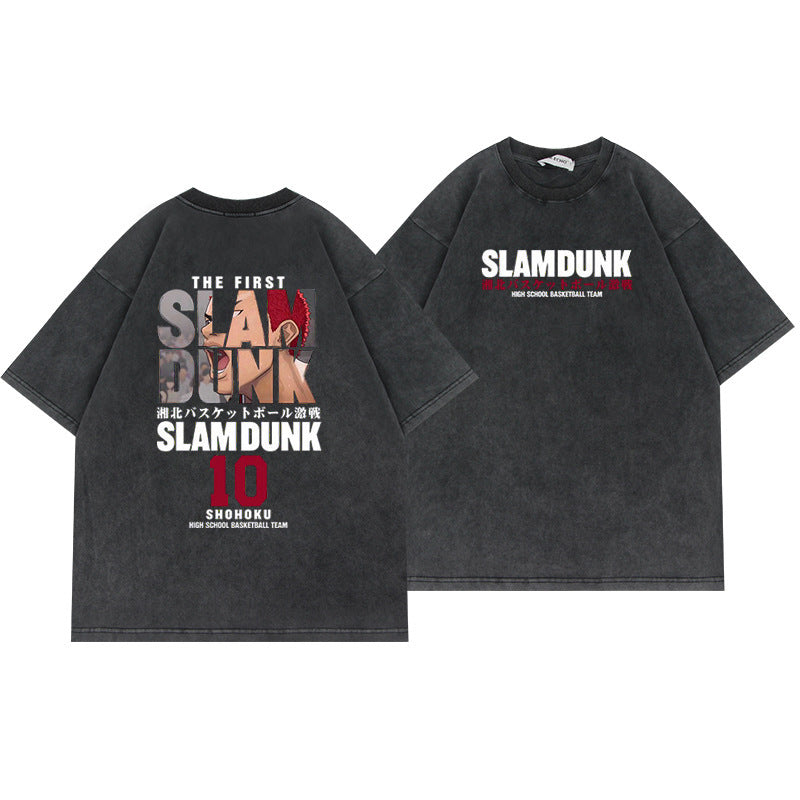 SLAM DUNK T-shirt anime old washed cotton short-sleeved top