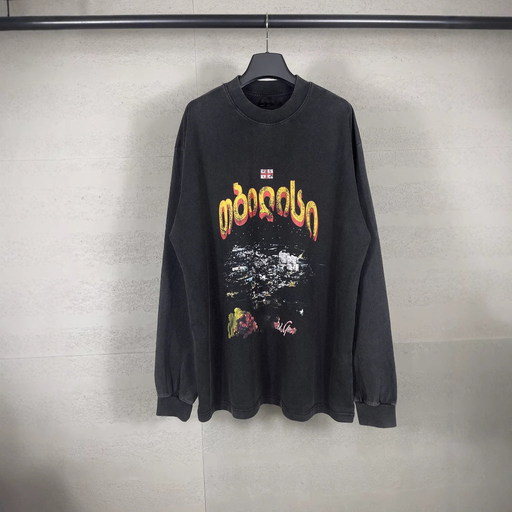 Mens T-shirts Georgian Tbilisi white print wash water do old long sleeves