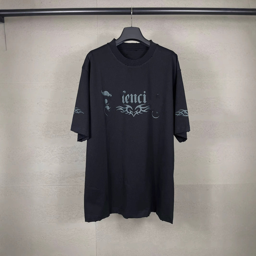Men T-shirts love print graffiti do old short sleeve T-shirt loose