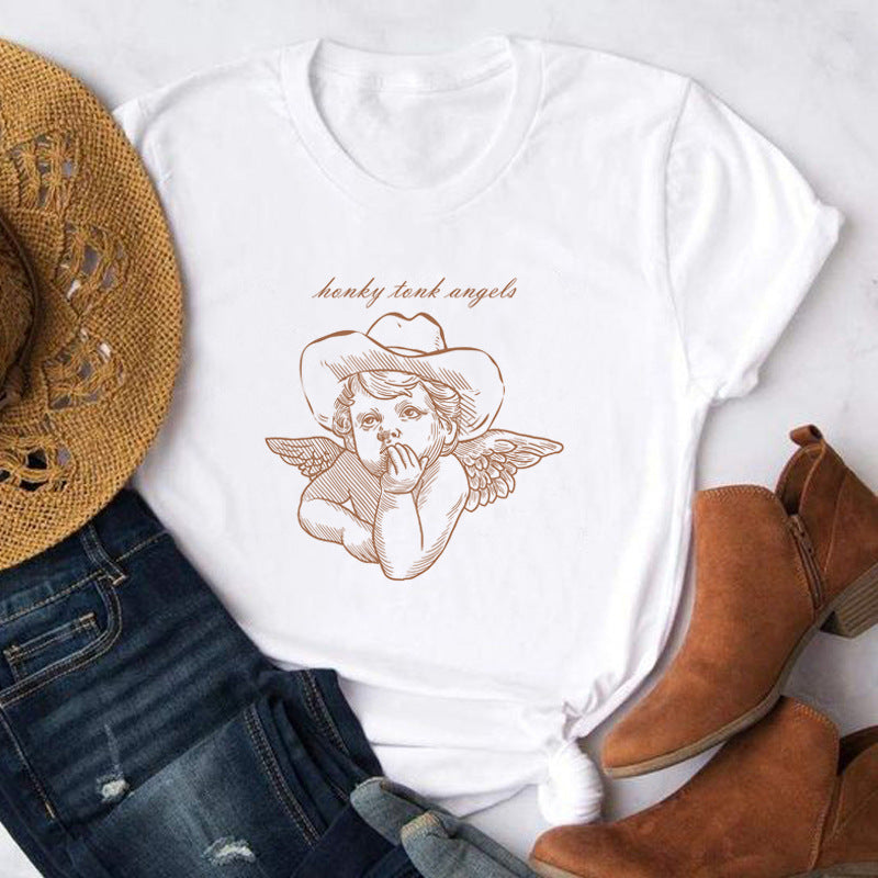 Tops Denim Retro T-Shirt Short Sleeves Cute