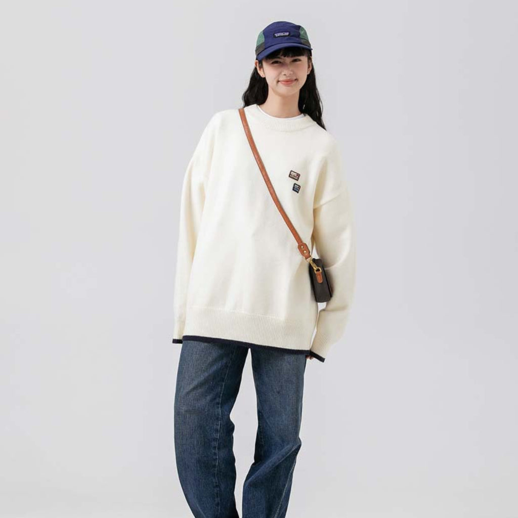 Unisex Sweater Autumn Patch Crew Neck Pullover Sweater