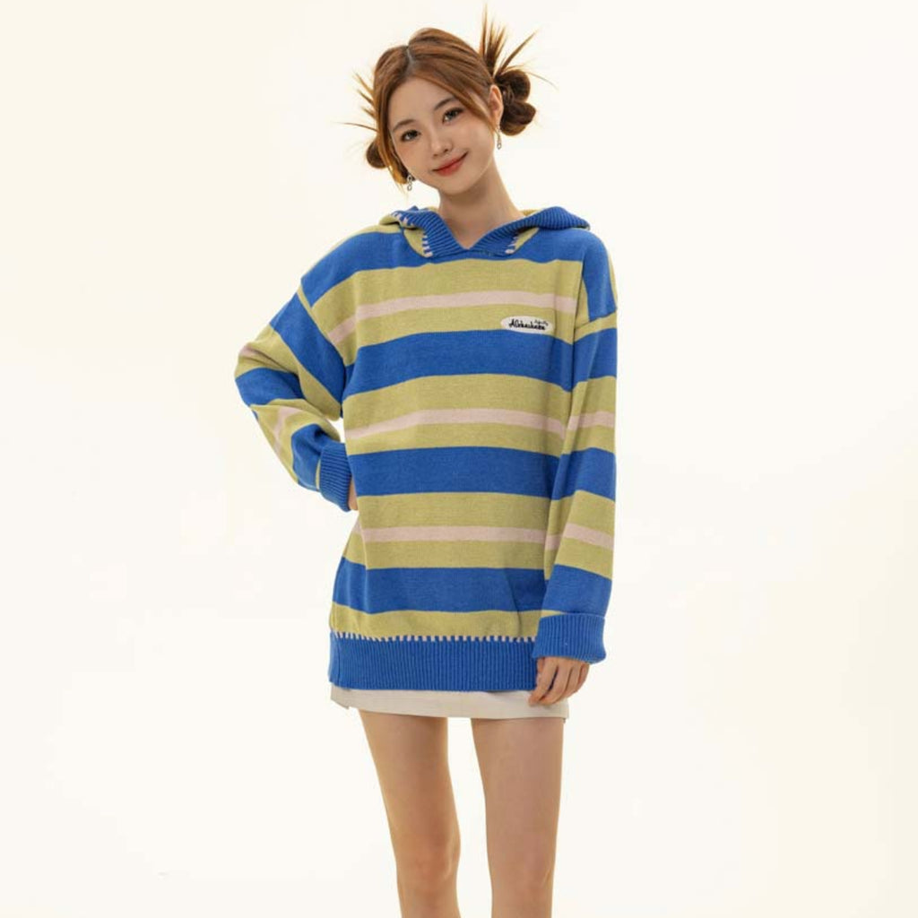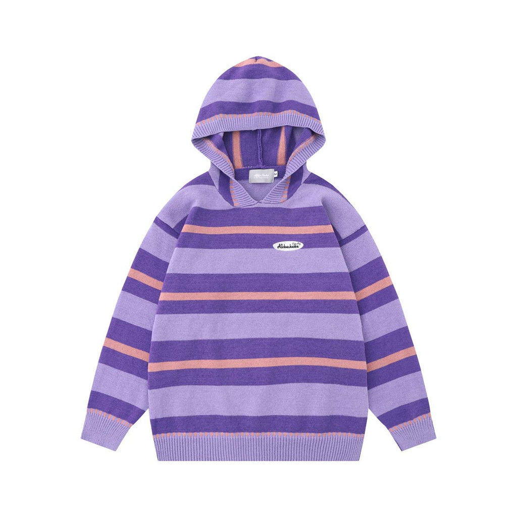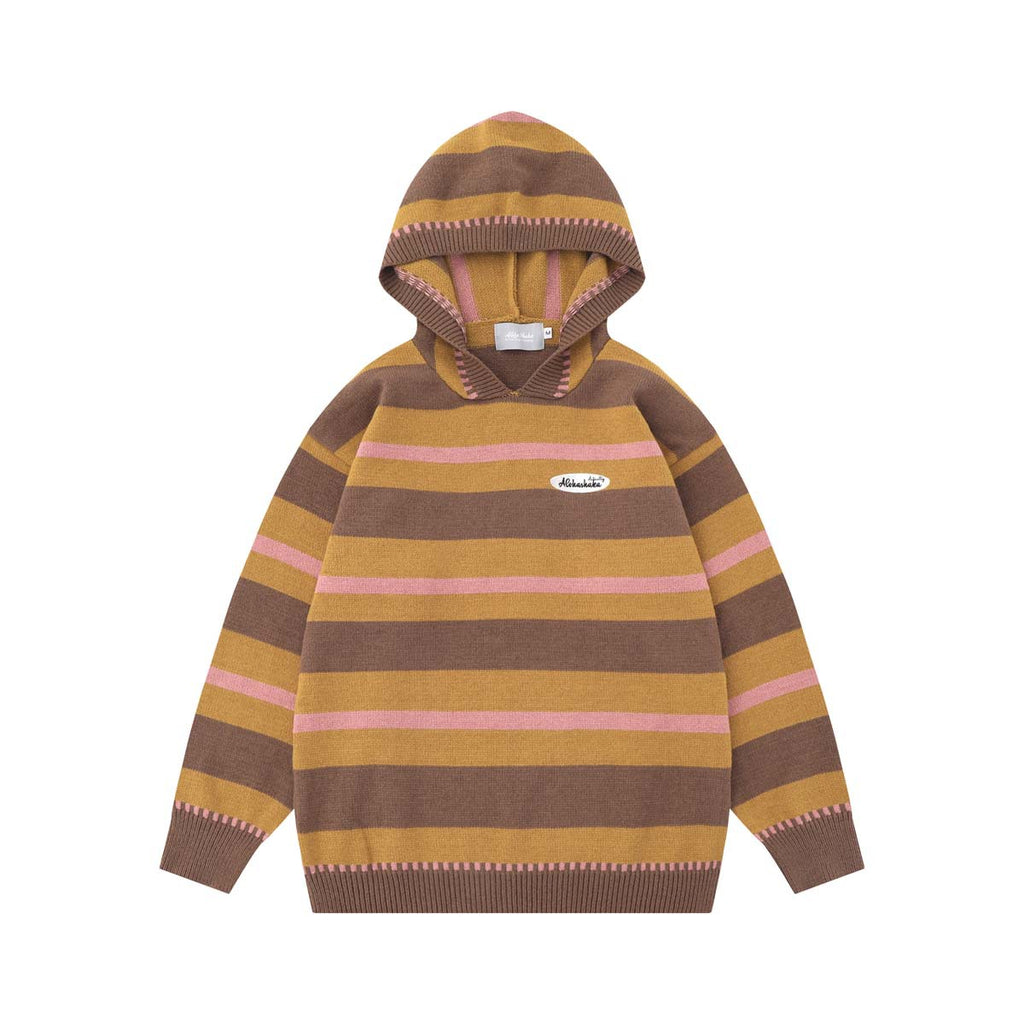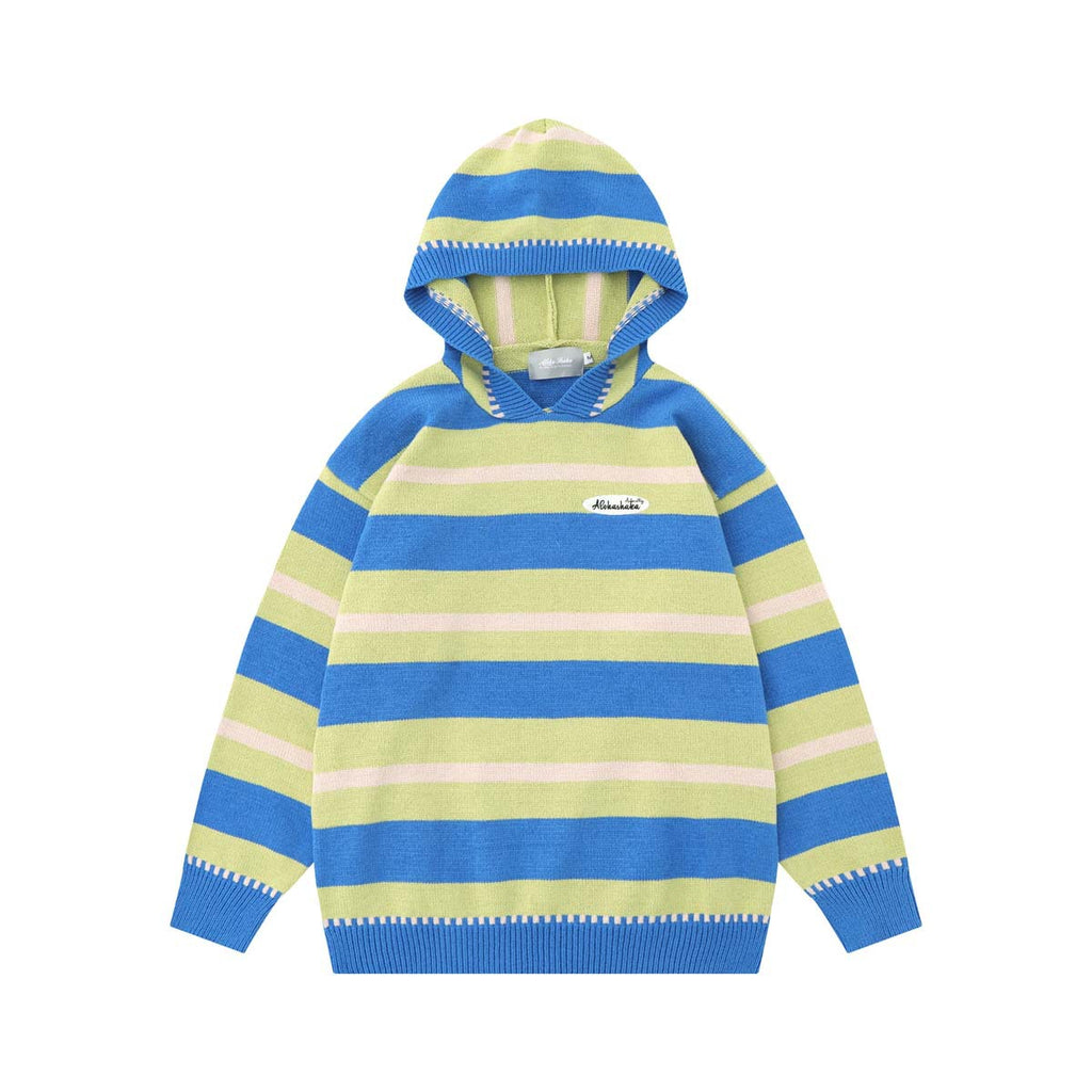 Unisex Sweater Autumn Striped Hooded Stitching Sweater