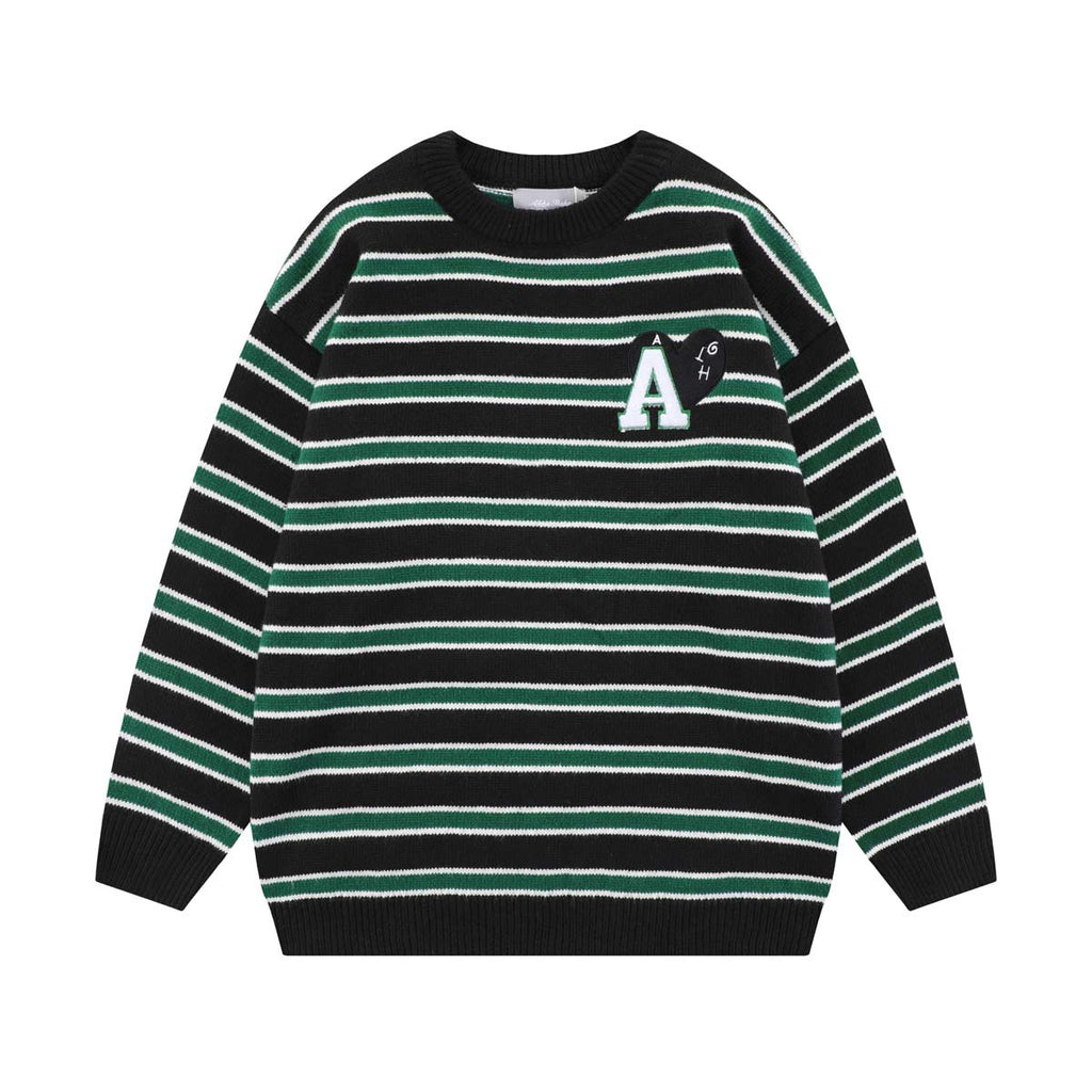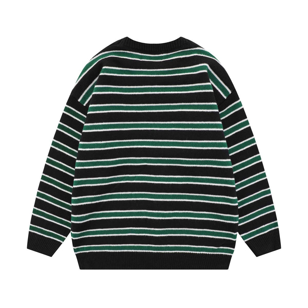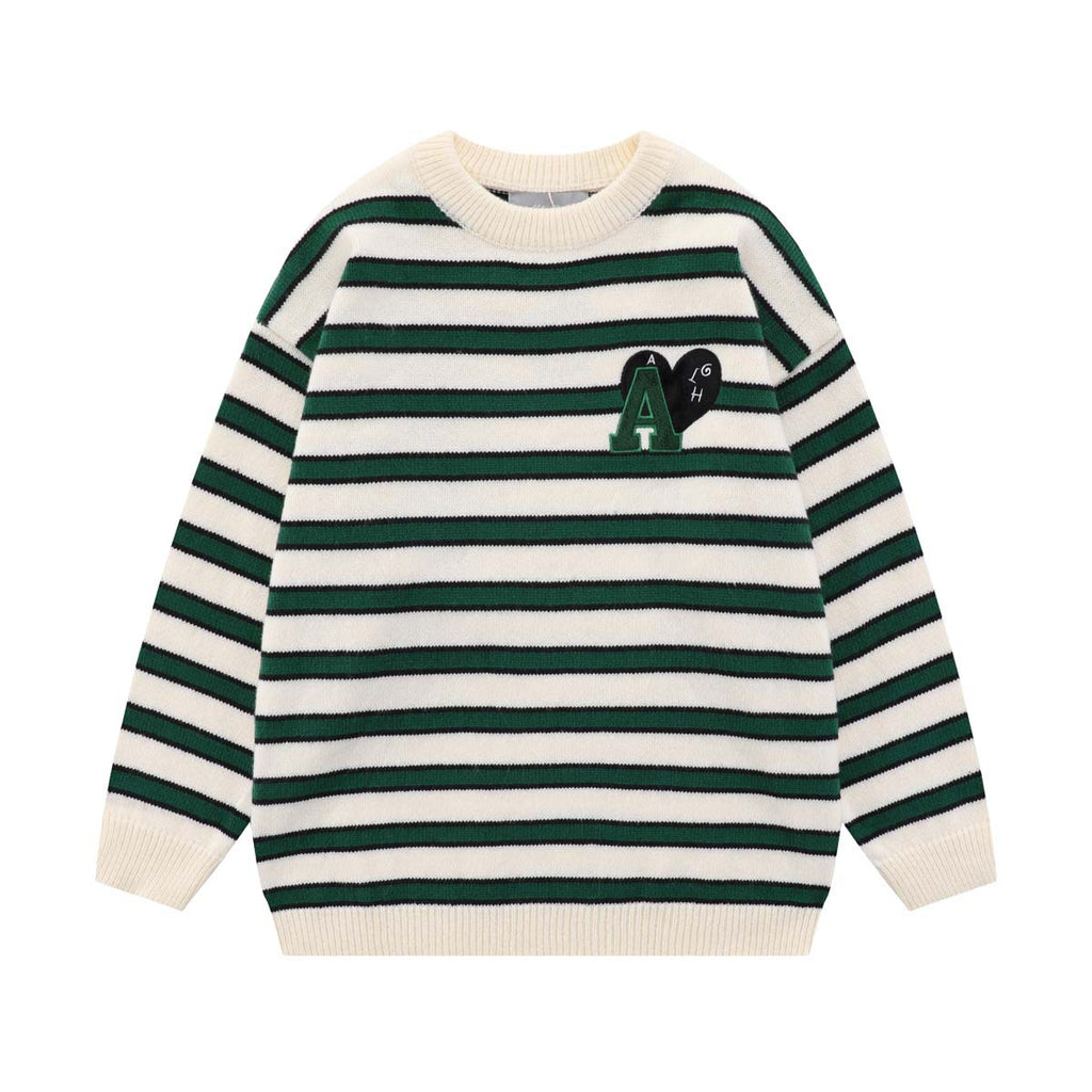 Unisex Sweater Autumn Striped Love Embroidered Sweater