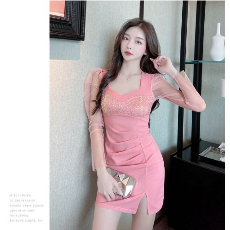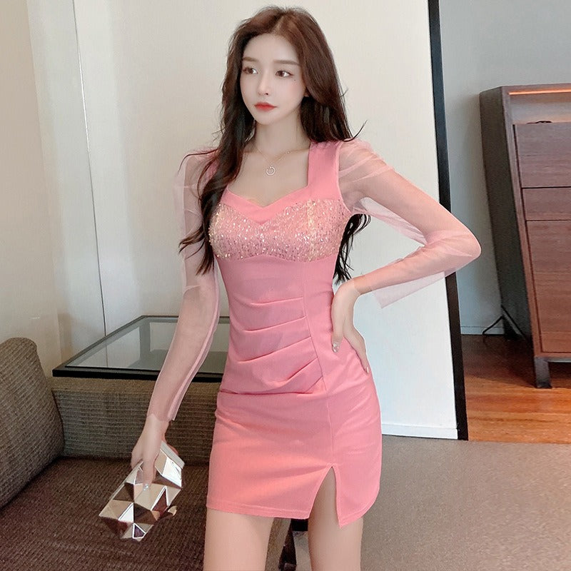 Women Maxi Dress Spring and Autumn Square Collar Sexy Dress