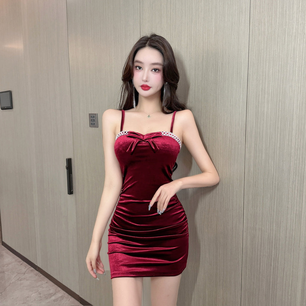 Women Maxi Dress Summer Sexy Sheath Pleuche Spaghetti-Strap Dress