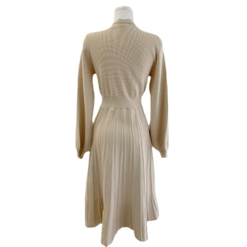 Women Maxi Dress Autumn and Winter Single-Breasted V-neck Knitted Dress