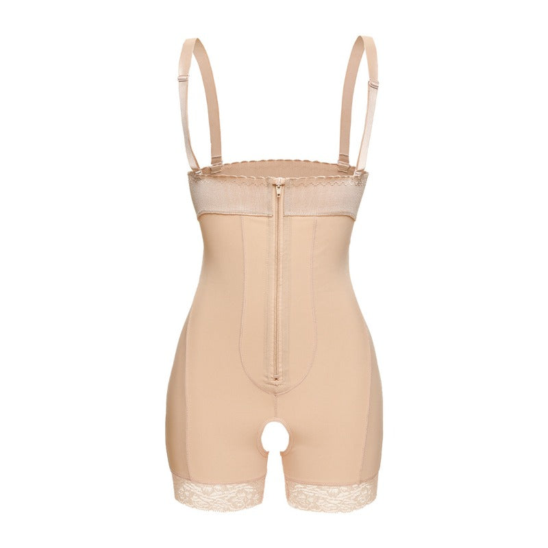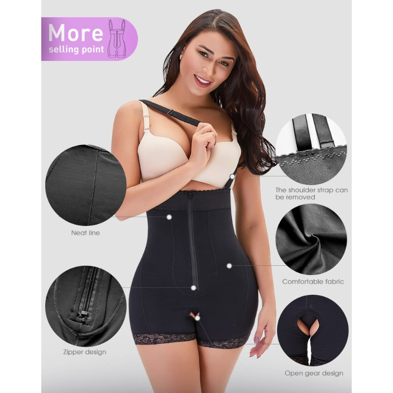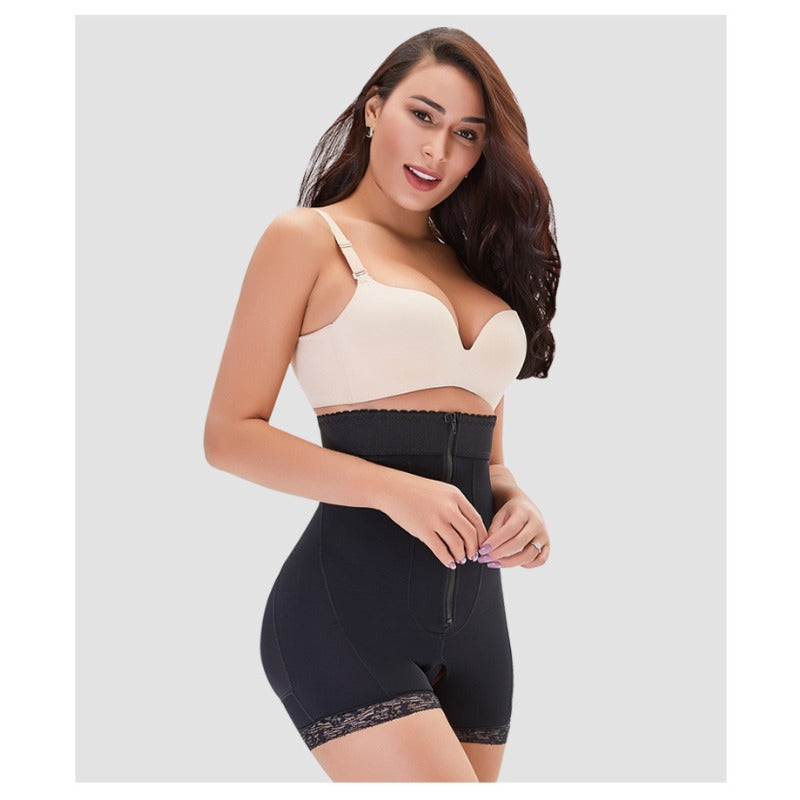 This shaper is built for high-performance core control. The zipper and steel buckle system acts as a dual-layer compression foundation to flatten the stomach, stabilize the waistline, and provide a secure, "locked-in" feel that remains discreet under form-fitting attire.