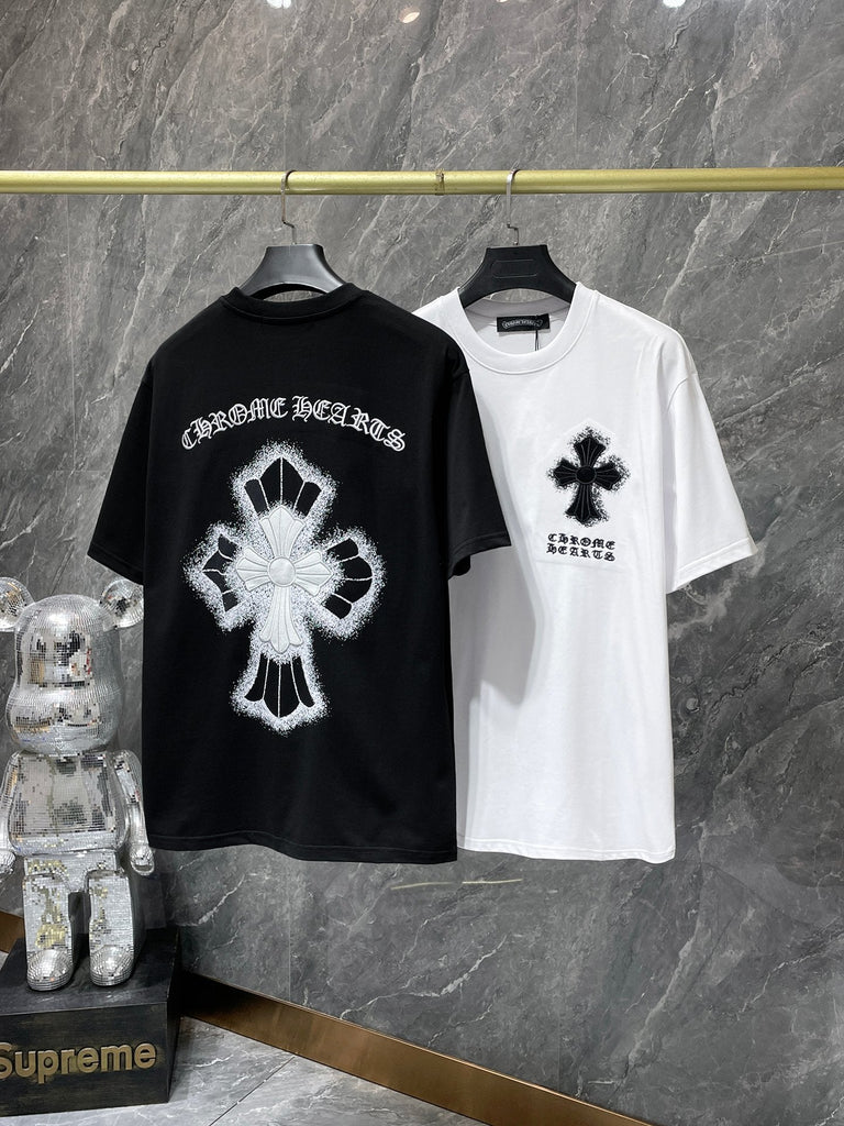 Chh Chrome Hearts T Shirts Embroidered Sanskrit Alphabet Cross Sports Loose Short Sleeve T-Shirt