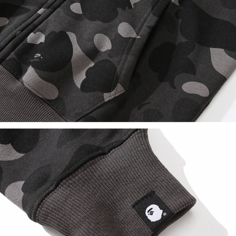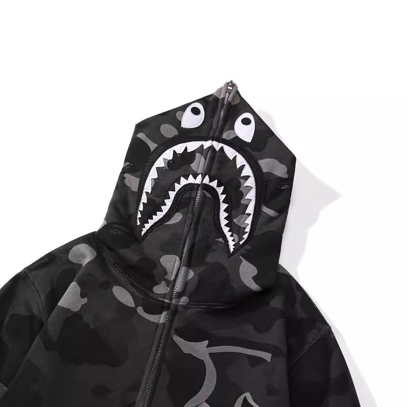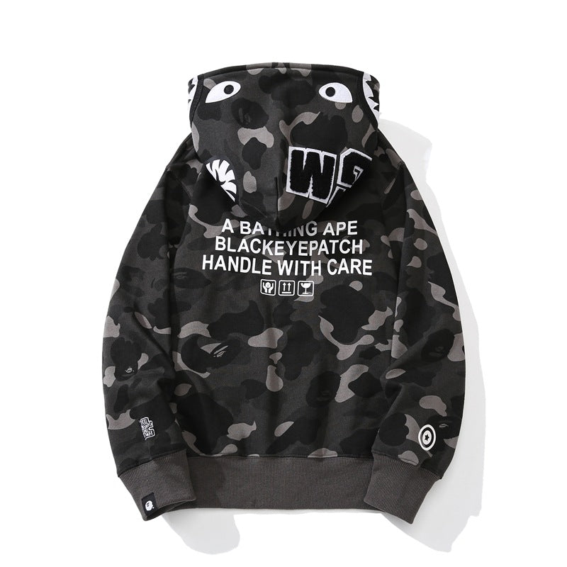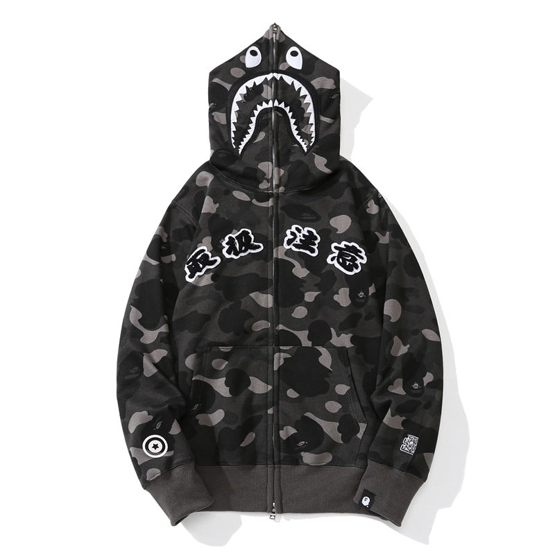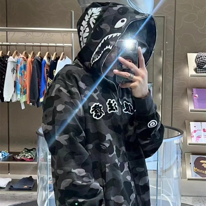 Bathing Ape Hoodie Camouflage Shark Text Embroidered Cardigan Hooded Sweater Jacket