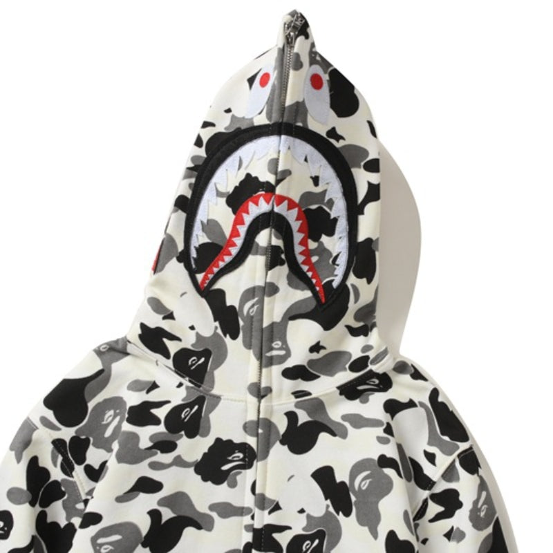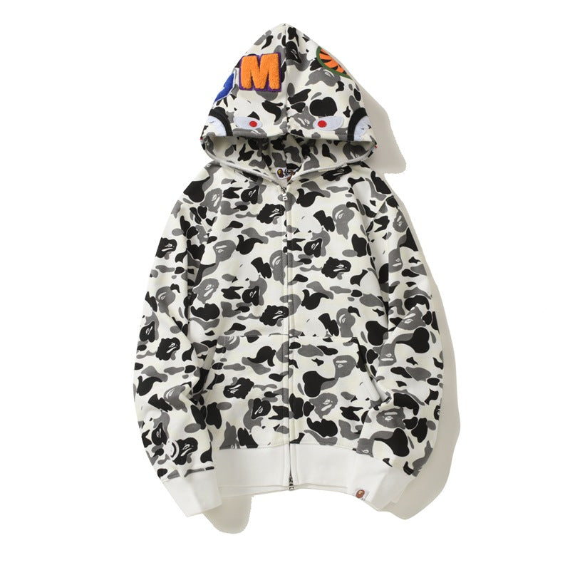 Bathing Ape Hoodie Shark Camouflage Printed Cardigan Zip Hooded Sweater Jacket