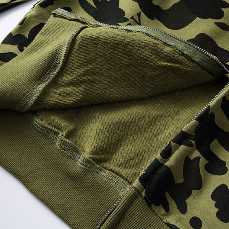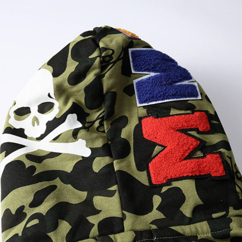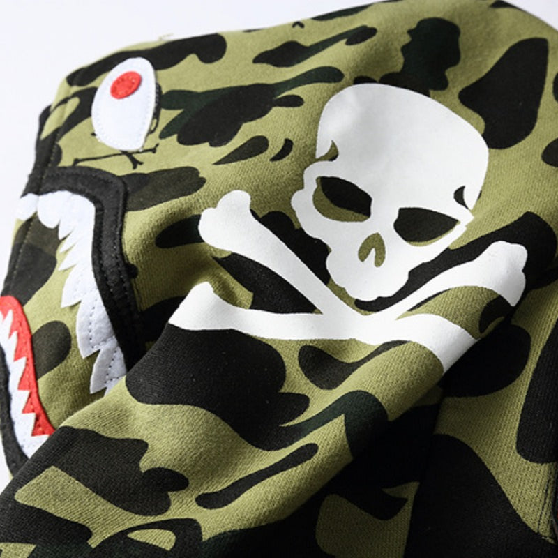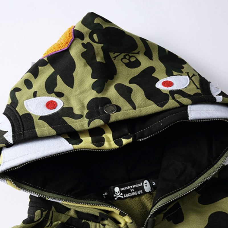 Bathing Ape Hoodie Two-Hat Camouflage Hoodie Men's and Women's Hooded Cardigan Shark Sweater Jacket