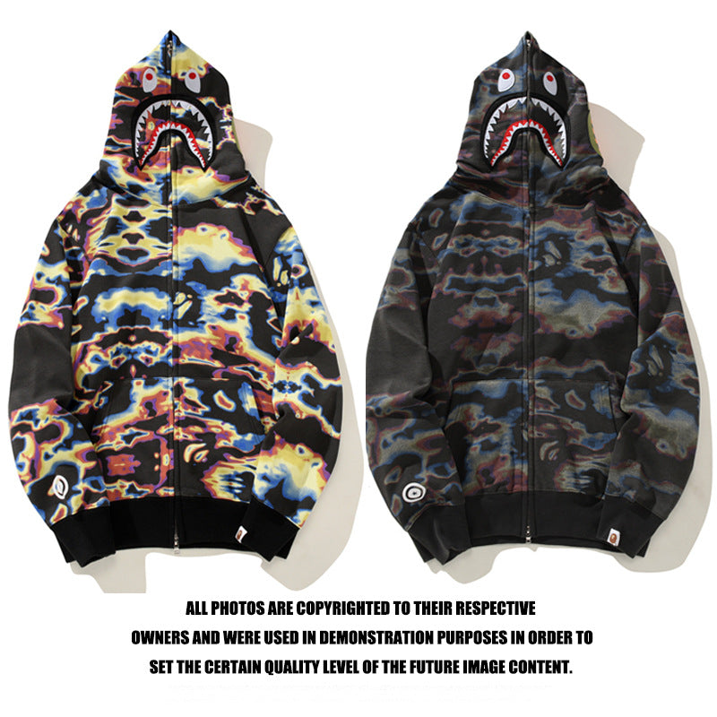Bathing Ape Hoodie Thermal Imaging Camouflage Shark Hooded Cardigan Zip Sweater Jacket