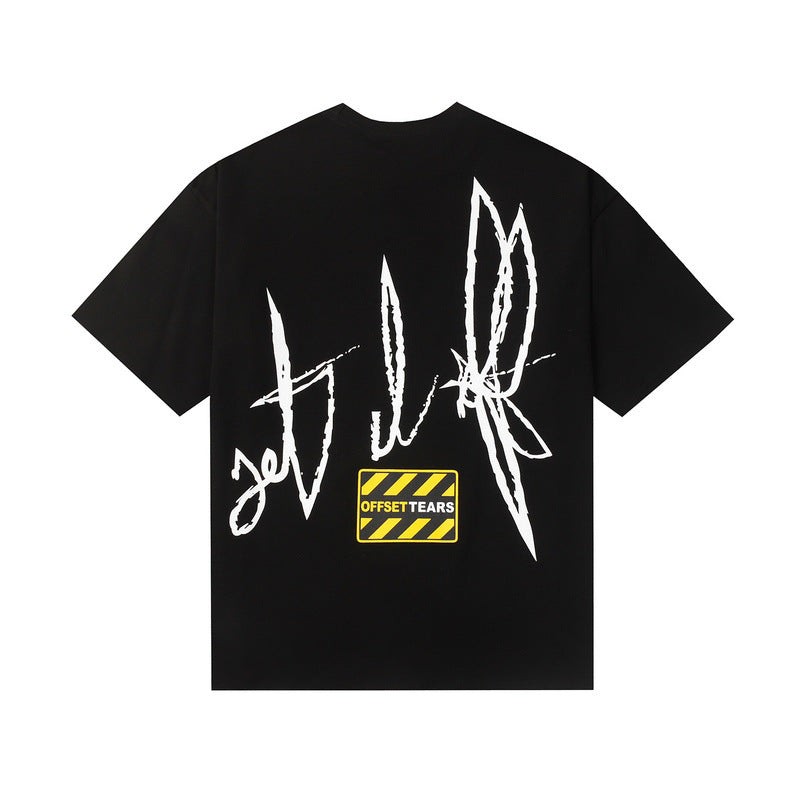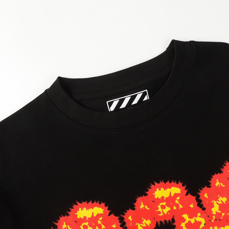 Denim Tears T Shirts Flame Wood Cotton Printed Loose Short Sleeve T-shirt