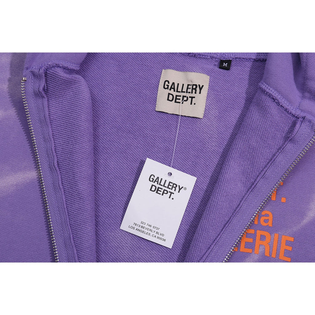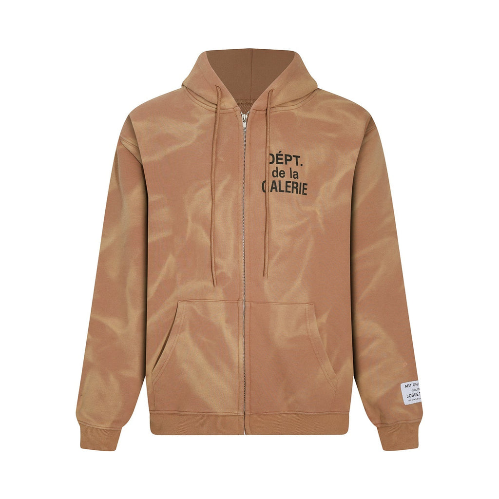 Gallery Dept Hoodie Letter Tie-Dye Washed Hooded Sweater Cardigan Jacket
