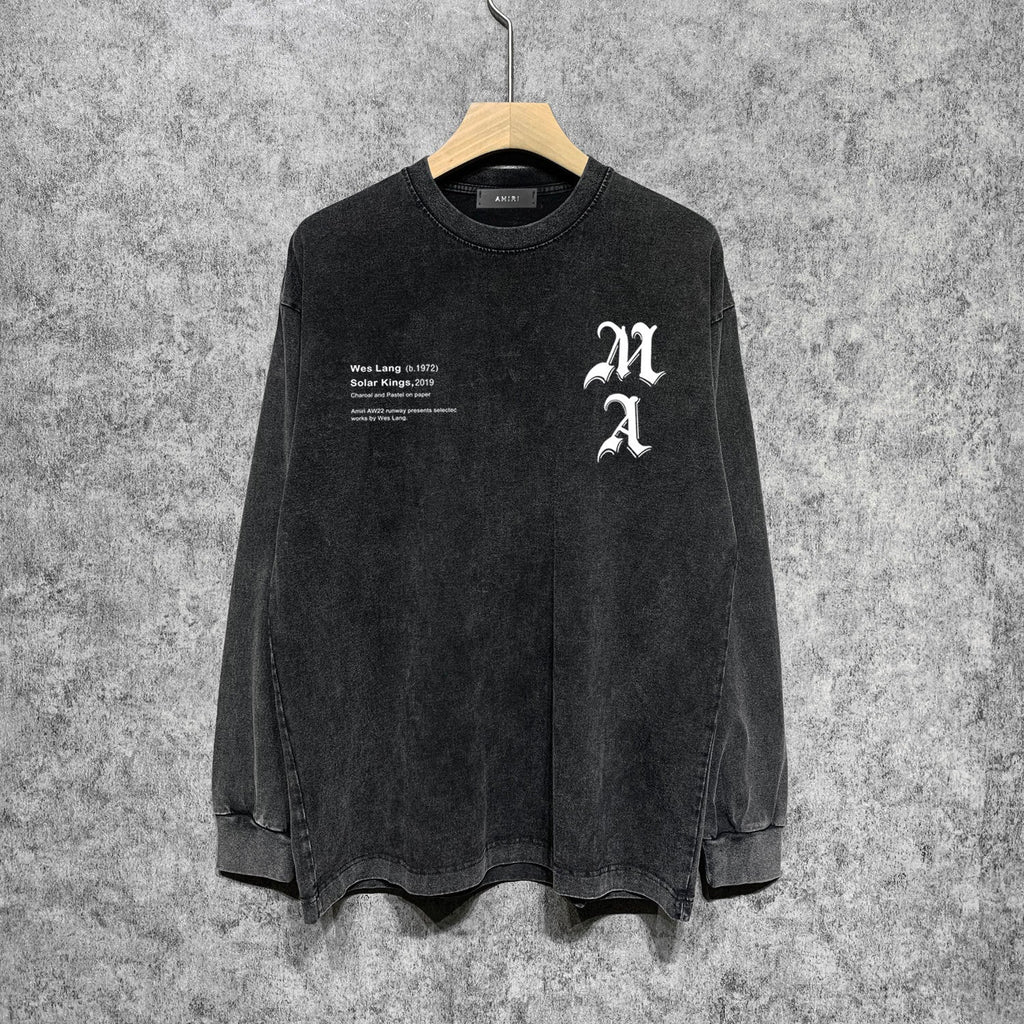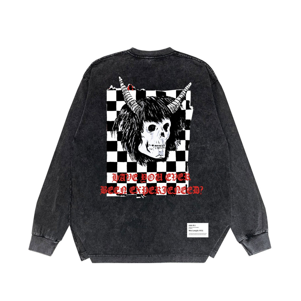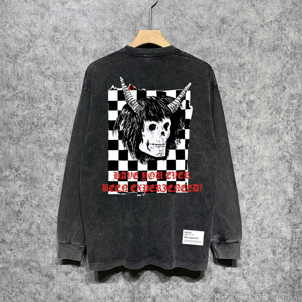 Amiri Long-Sleeved Shirt Horn Skull Vintage Distressed Long Sleeve T-shirt
