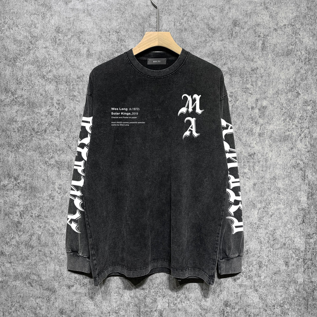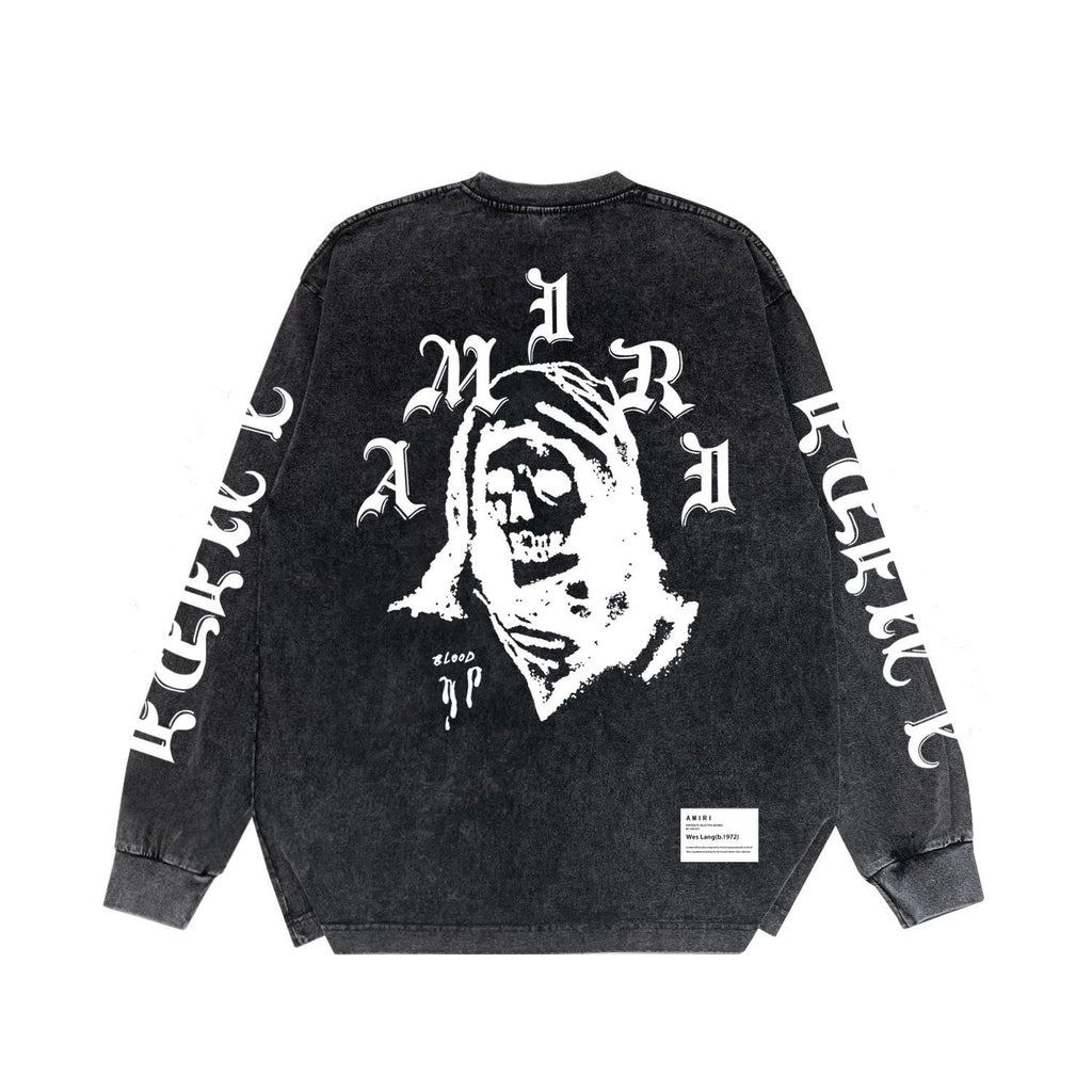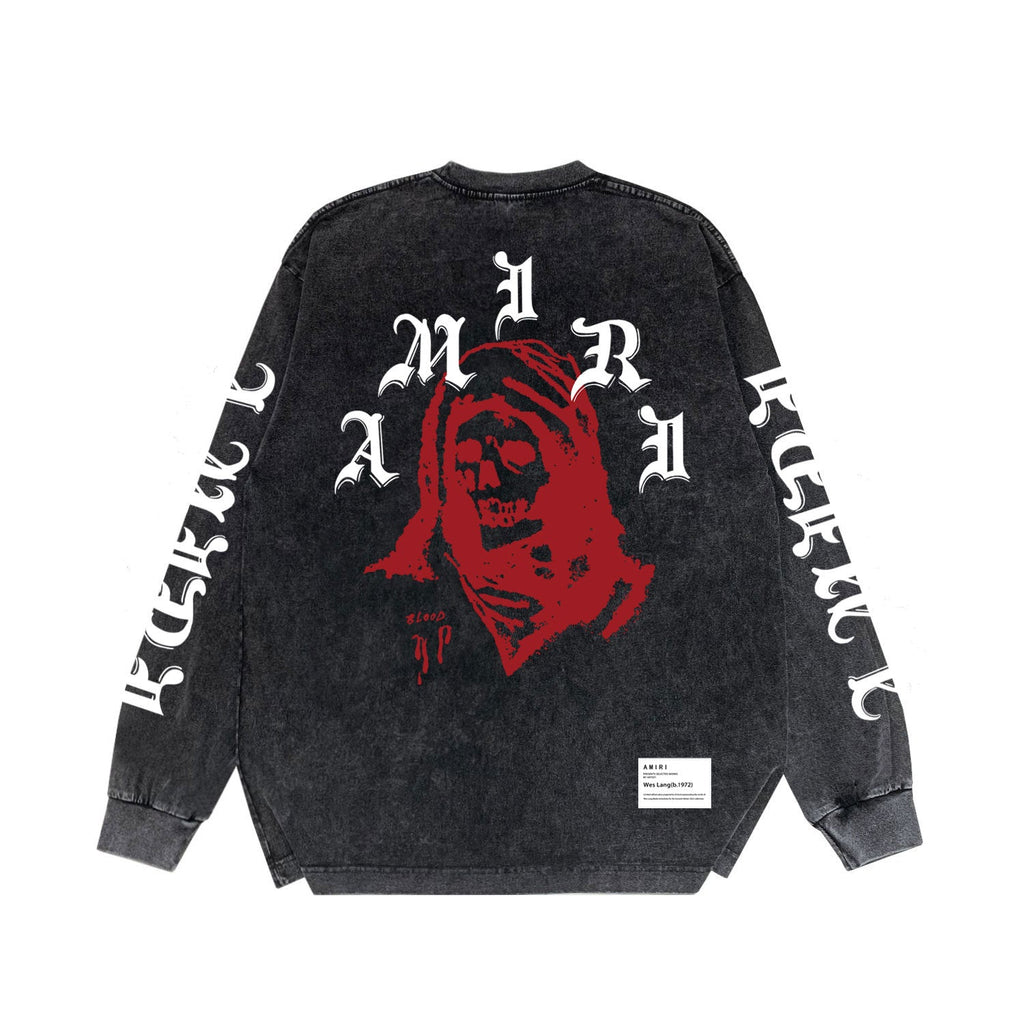 Amiri Long-Sleeved Shirt Cool Handsome Personalized Printed Vintage Retro Long Sleeve T-shirt