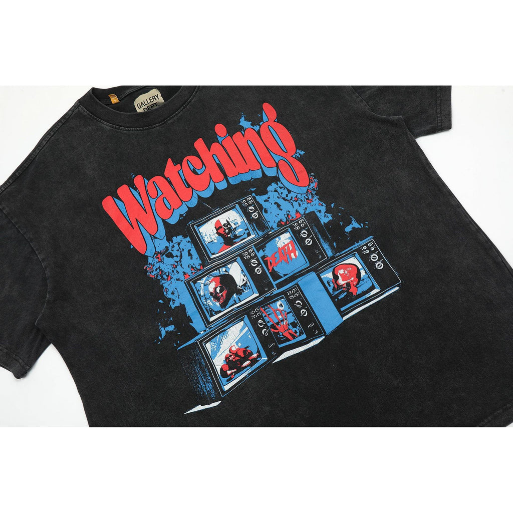 Gallery Dept T Shirts TV Printing Washed Distressed Short Sleeve plus Size