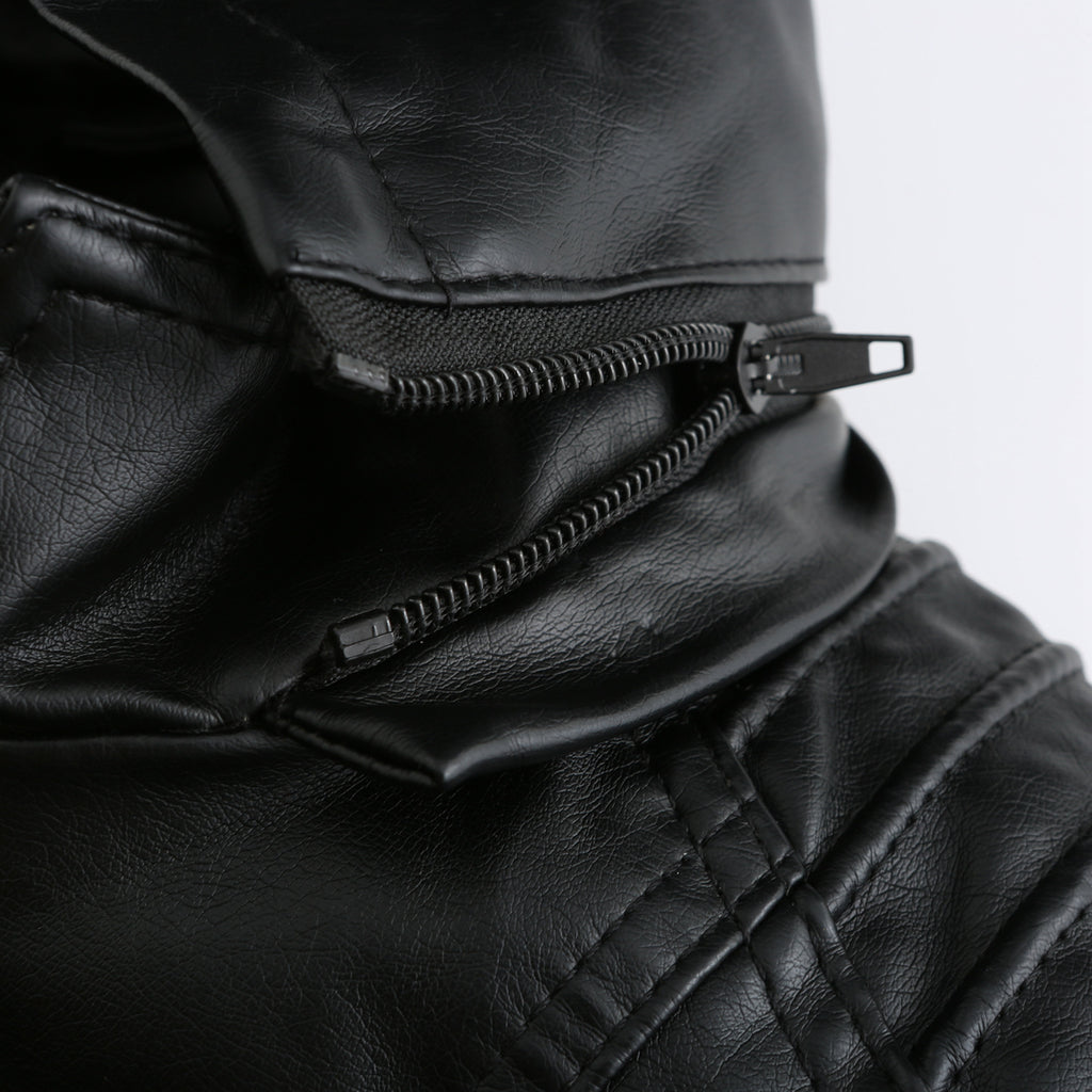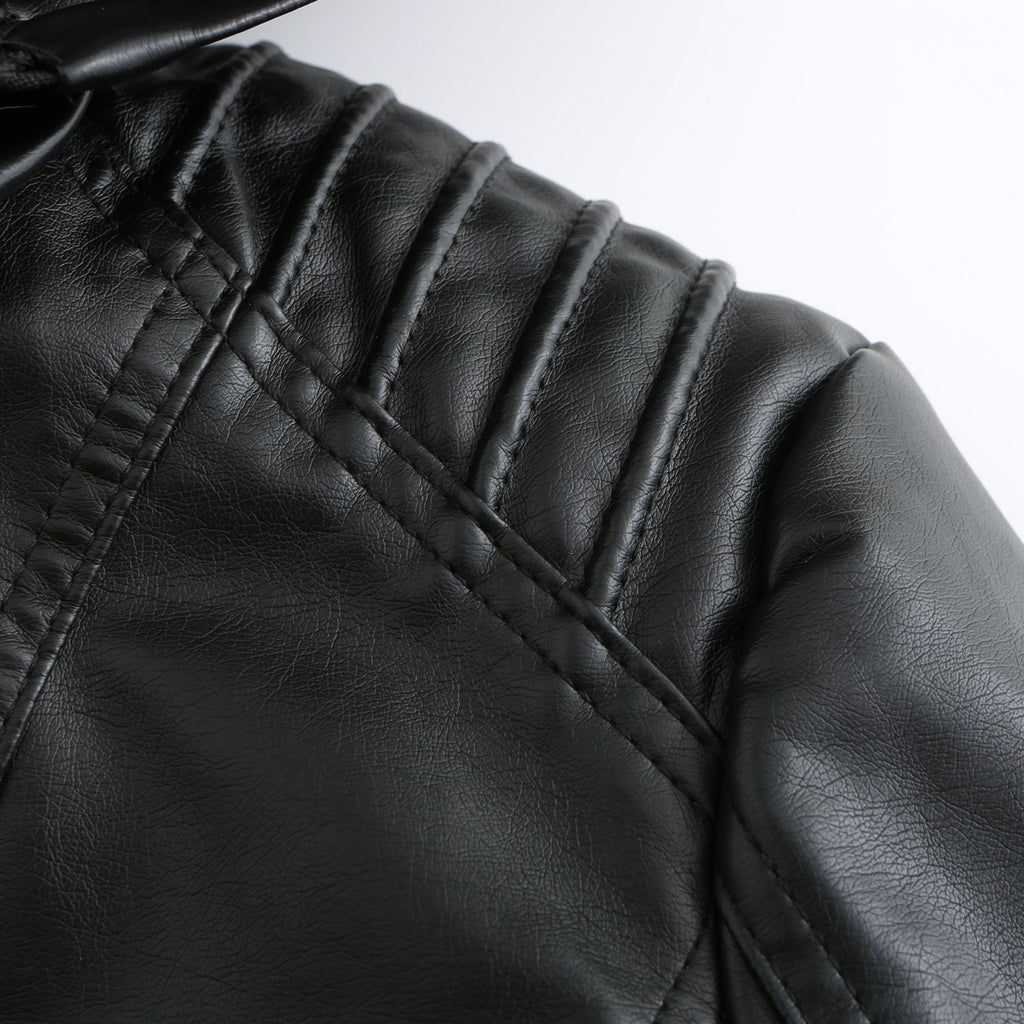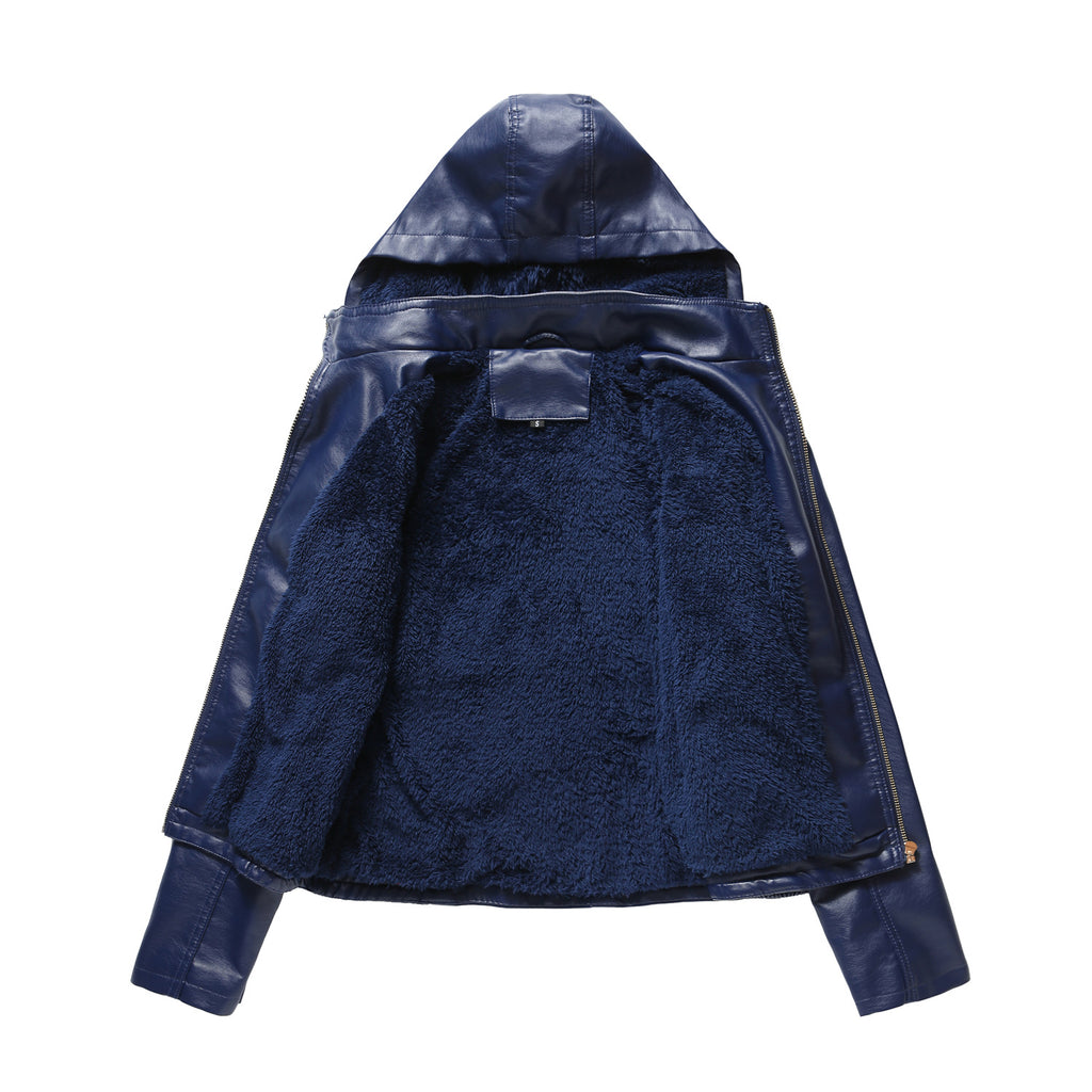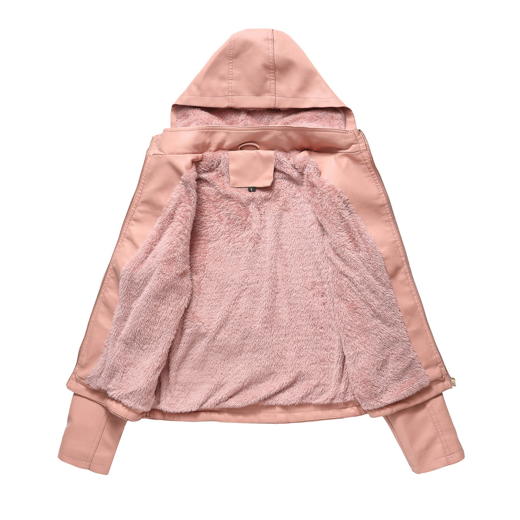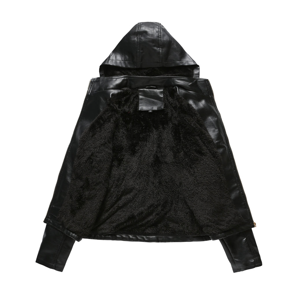 Red Leather Jacket Fall Winter Hooded Leather Women's Detachable Hat Long-Sleeve Zipper Fleece-Lined Wallet