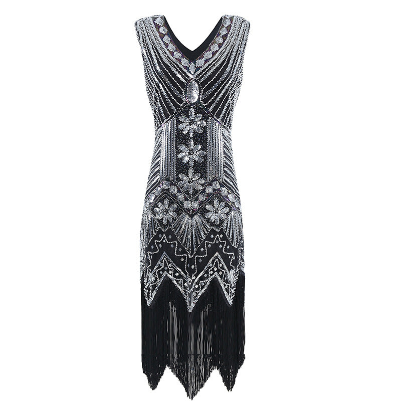 Flappers 1920S Dress Sequined Dress plus Size Tassel V-neck Evening Gown