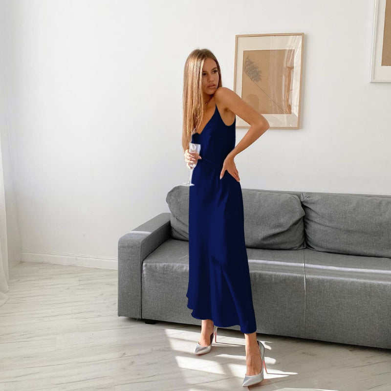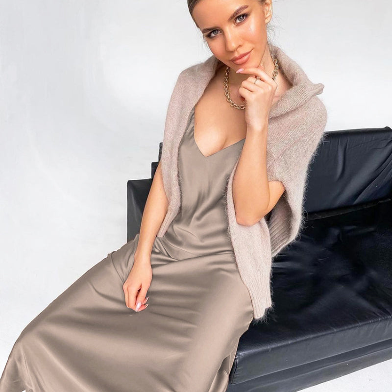 Corset Dress French Strap Dress Beautiful Autumn Dress Satin Drape V-neck Dress