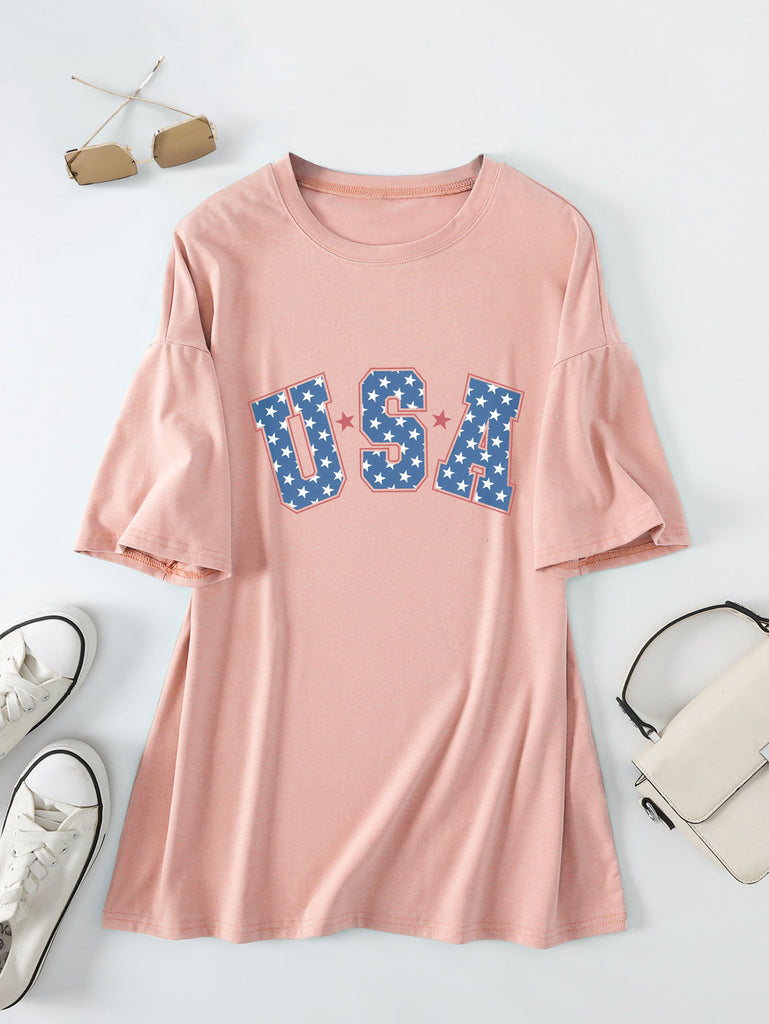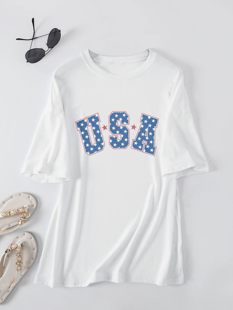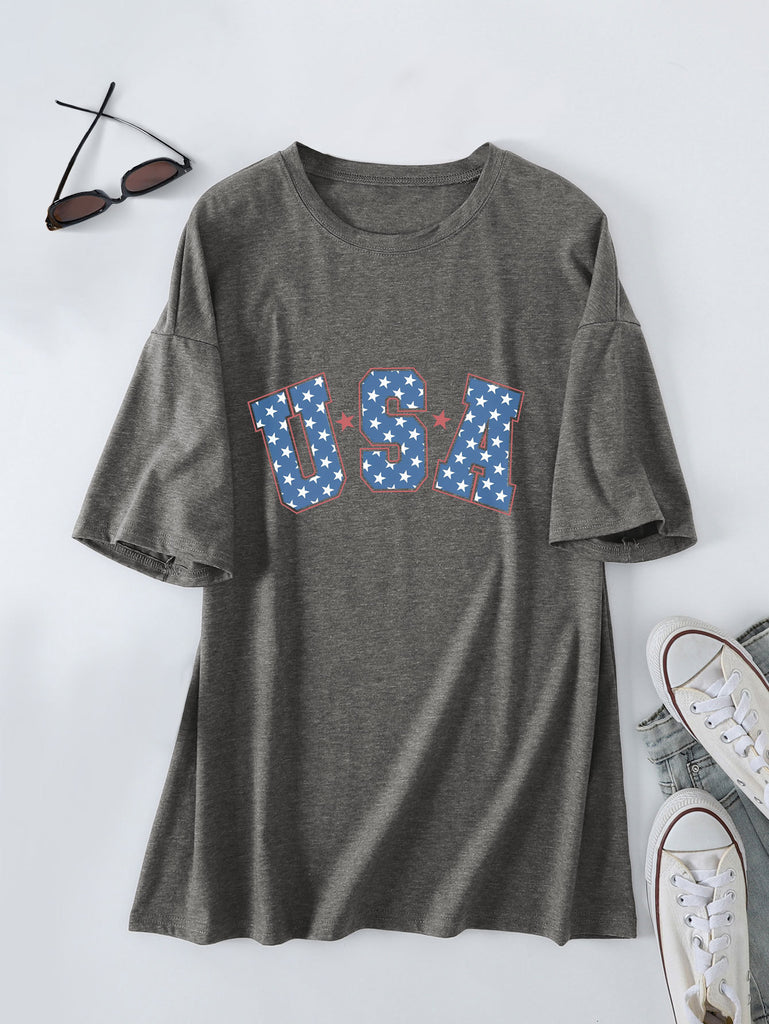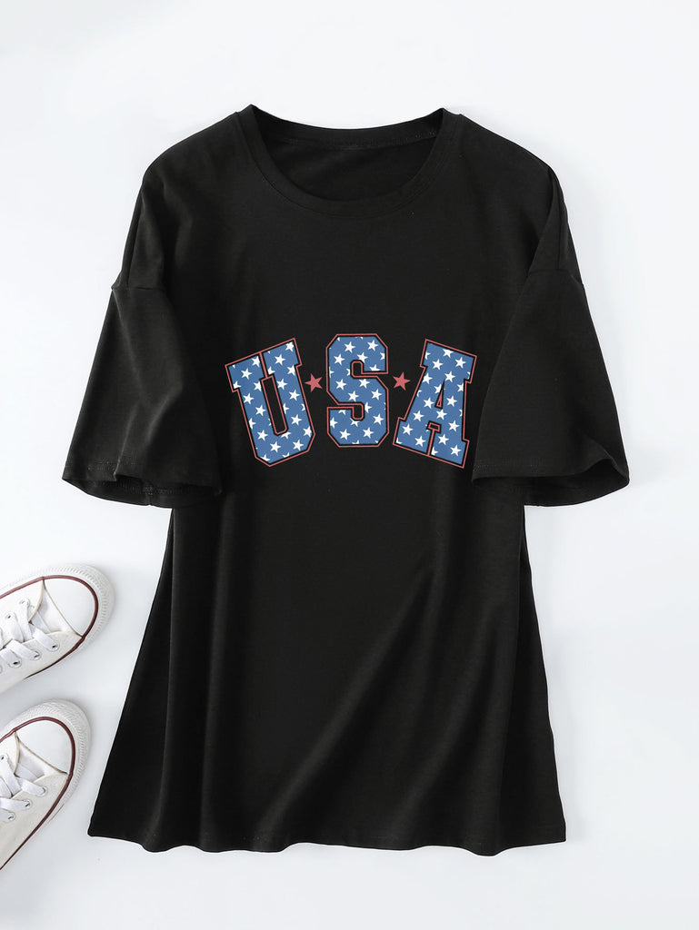 Crew neck short-sleeved usa printed T-shirt casual and loose