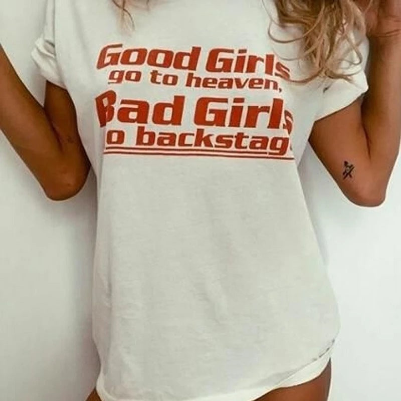 Good Girls Go To Heaven Bad Girls Go Backstage Slogan Shirt