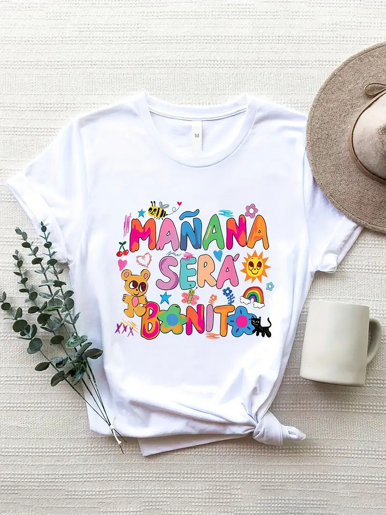 Cartoon Print T-Shirt, Short Sleeve Crew Neck Casual Top